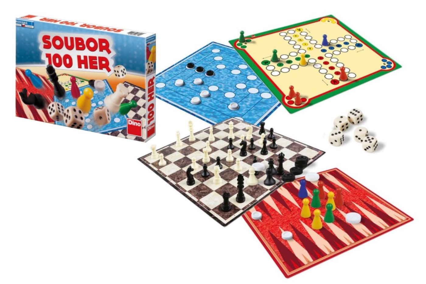 Nejste přeborníkem na šachy? Nevadí, v této krabici najdete ještě 99 dalších disciplín, ve kterých můžete excelovat! Těšte se na Dámu, Mlýn a Člověče na nejrůznější způsoby, spousta obměn hry v kostky a další kratochvíle. Hry slibují pestrou zábavu pro všechny věkové kategorie. Bohaté příslušenství je vyrobeno z kvalitních a zdravotně nezávadných materiálů.