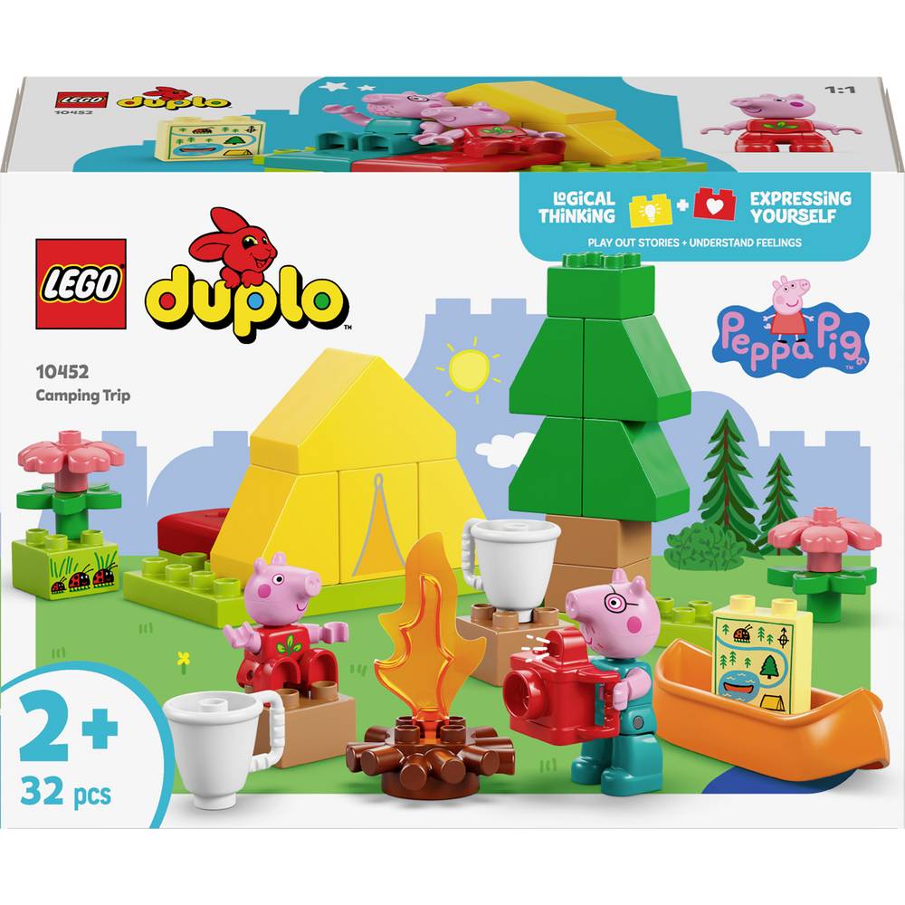 Sada Peppa Wutz pro výlet v kempu (10452) je stavebnicová a hrací sada, která pošle malé děti na fascinující dobrodružství. Válečné hry s Peppa a Papa umožňují předškolní kinům vyzkoušet kempu a kanut