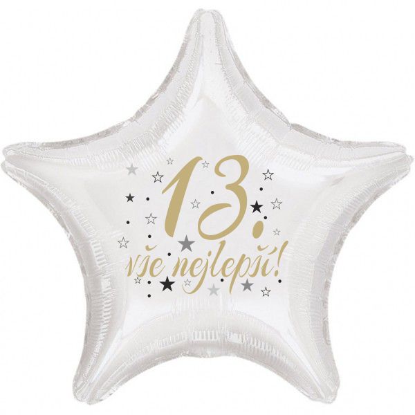 13. narozeniny balónek hvězda Fóliové balónky nabízíme v různých tvarech a barvách. Jsou sice dražší než klasické latexové balónky, ale jejich výhodou je kvalita a nepropustnost. Fóliové balónky nafouknuté vzduchem Vám vydrží několik měsíců bez výrazných změn. V případě, že fóliový balónek nafouknete heliem, můžete počítat s dobou létání přibližně 3-7 dní, přičemž létání balónků ovlivňuje okolní teplota i objem samotného balónku. Balónek má samouzavíratelný ventil, který ihned po nafouknutí zamezí úniku vzduchu popř. helia. Při nafukování vzduchem používejte prosím ruční pumpu popř. brčko na pití. Inspiraci pro Vaší dekoraci najdete na internetovém magazínu www.party-narozeniny.cz Velikost nabízených balónků je 42 cm.Je možné nafukovat heliem i vzduchem. Objem 13 litrů. POZOR!!! Všechny námi nabízené fóliové balónky mají samouzavíratelný ventil. V případě nafukování vzduchem, nafukujte ruční pumpou. Po nafouknutí se balonky samy uzavřou. Je možné je taky průběžně přes uzavíratelný ventil dofukovat.