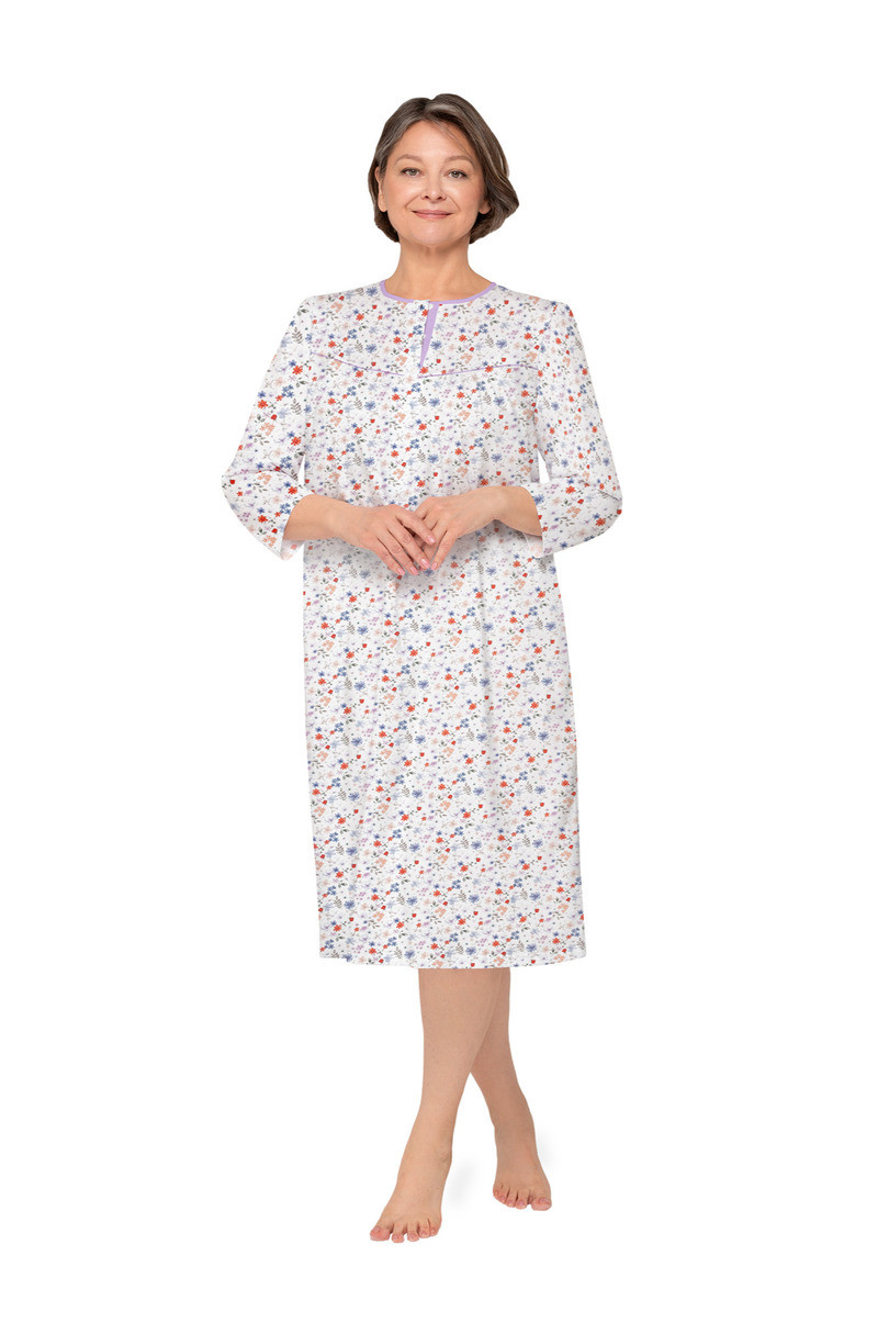 Dámská košile s dlouhými rukávy z jemné vzorované bavlny s digitálním potiskem. Dílčí výstřih, nařasení na prsou, délka ke kolenům. Složení: 100% bavlna .