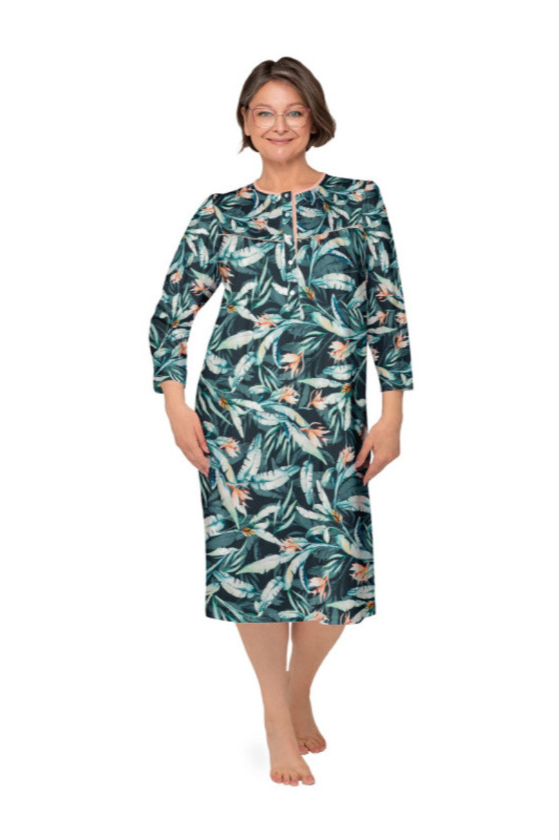 Dámská košile s dlouhými rukávy z jemné vzorované bavlny s digitálním potiskem. Dílčí výstřih, nařasení na prsou, délka ke kolenům. Složení: 100% bavlna .