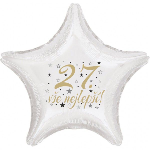 27. narozeniny balónek hvězda Fóliové balónky nabízíme v různých tvarech a barvách. Jsou sice dražší než klasické latexové balónky, ale jejich výhodou je kvalita a nepropustnost. Fóliové balónky nafouknuté vzduchem Vám vydrží několik měsíců bez výrazných změn. V případě, že fóliový balónek nafouknete heliem, můžete počítat s dobou létání přibližně 3-7 dní, přičemž létání balónků ovlivňuje okolní teplota i objem samotného balónku. Balónek má samouzavíratelný ventil, který ihned po nafouknutí zamezí úniku vzduchu popř. helia. Při nafukování vzduchem používejte prosím ruční pumpu popř. brčko na pití. Inspiraci pro Vaší dekoraci najdete na internetovém magazínu www.party-narozeniny.cz Velikost nabízených balónků je 42 cm.Je možné nafukovat heliem i vzduchem. Objem 13 litrů. POZOR!!! Všechny námi nabízené fóliové balónky mají samouzavíratelný ventil. V případě nafukování vzduchem, nafukujte ruční pumpou. Po nafouknutí se balonky samy uzavřou. Je možné je taky průběžně přes uzavíratelný ventil dofukovat.