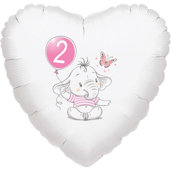Druhé narozeniny - fóliový balónek s růžovým slonem. Krásně vyzdobí dětskou párty. Narozeninové balónky okouzlí malého oslavence i hosty a vytvoří nezapomenutelnou atmosféru. Fóliové balónky mají samouzavíratelný ventil, takže po nafouknutí se samy uzavřou a helium ani vzduch již unikat nebude. Nafukovat můžete vzduchem s použitím ruční pumpy popř. můžete použít brčko na pití. Dětské foliové balónky nafouknuté vzduchem vydrží v nezměněném tvaru celé týdny. Pokud chcete překvapit oslavence létajícími balónky, je nutné použít na nafouknutí helium. Balónky nafouknuté heliem vydrží létat 3-7 cní, přičemž dobu létání ovlivňuje okolní teplota a objem samotného balónku. Slavnostní výzdobu oživí hotové sady balónků. Chcete připravit dokonalou párty? Vyzkoušejte balónky s potiskem jména oslavence anebo balónky s fotkou oslavence. Velikost nabízených balónků je 42 cm a objem 13 litrů.