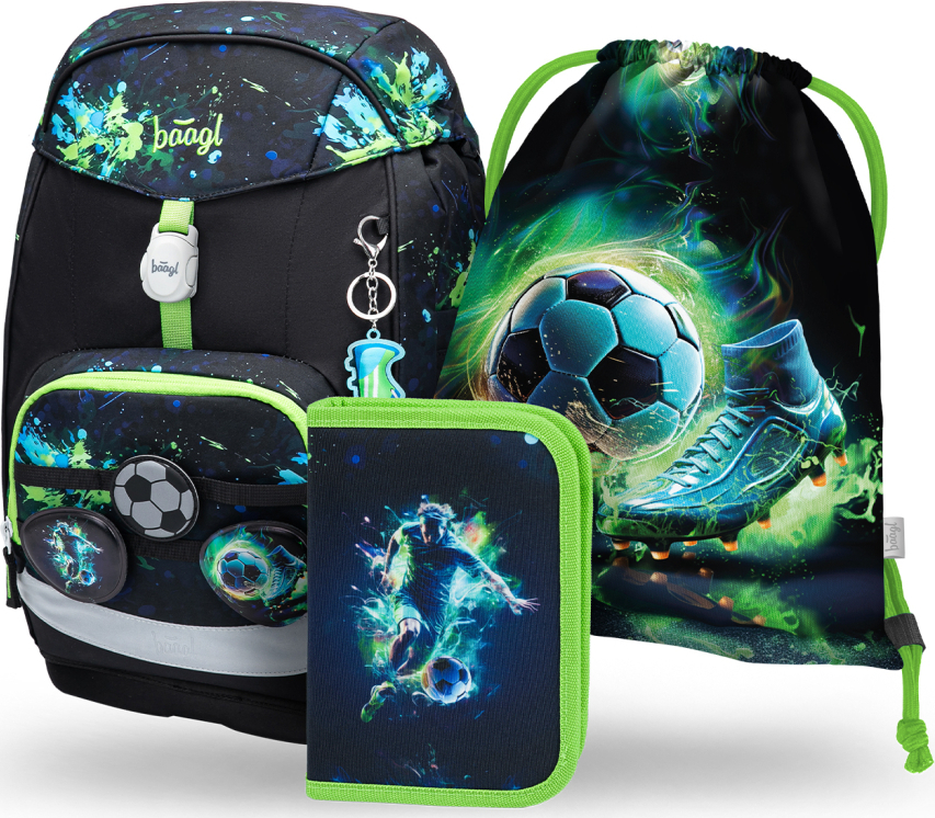 ŠKOLNÍ BATOH AIRY PLUS FOTBAL • Ergonomický školní batoh AIRY PLUS s pevným dnem a anatomicky tvarovanými zády s integrovanou hliníkovou výztuží je ideální pro děti již od první třídy ZŠ.• Díky hmotnosti nižší než 1200 g nezatěžuje dětská záda a je ideální pro každodenní nošení.• Rostoucí zádový systém Grow je možné nastavit na tři různé velikosti a přizpůsobit batoh aktuální výšce dítěte. AIRY PLUS tak roste společně s ním a zajišťuje dlouhodobé pohodlí i zdravé držení těla.• Ergonomicky tvarovaná záda doplňují plně nastavitelné ramenní popruhy s prodyšným polstrováním, odnímatelný bederní pás a hrudní popruh, které zaručují maximální komfort, stabilitu a správné rozložení zátěže na dětských zádech.• Víko batohu je vybaveno praktickou kapsou na zip a intuitivním magnetickým zapínáním, které se samo zacvakne po přiklopení. Otevírání i zavírání je tak snadné, že jej bez problémů zvládne i prvňáček.• Vnitřní prostor nabízí hlavní komoru s přehledným organizérem a lehké plastové desky pro ochranu sešitů, které kopírují tvar zadní kapsy. • Přední termo kapsa je ideální pro uložení svačiny – udrží potraviny čerstvé po delší dobu a zamezí přenosu pachů do ostatních částí batohu.• Batoh AIRY PLUS nabízí moderní, hravý design s možností vyměnitelných odznáčků (Baaglies), které umožňují přizpůsobit vzhled tašky podle zájmů dítěte. • Batoh je vyroben z recyklovaného, voděodolného materiálu a doplněn o výrazné reflexní prvky pro bezpečnost dítěte za zhoršené viditelnosti.• Certifikace Global Recycled Standard (GRS) potvrzuje šetrnost k životnímu prostředí a splnění vysokých sociálních a ekologických požadavků. ŠKOLNÍ PENÁL JEDNOPATROVÝ FOTBAL HRÁČ • Klasický jednopatrový penál se dvěma chlopněmi. • Disponuje značkovým zipem YKK, který zajišťuje vysokou odolnost. • Součástí penálu je také kapsička na drobnosti a okénko na rozvrh hodin. • Prostorný penál lze po otevření celý rozložit, což usnadňuje orientaci v jeho obsahu. • Pevné gumičky jsou vhodné i pro trojhranné pastelky a fixy. • Penál je dodáván bez náplně a je vyroben z recyklovaného materiálu. SÁČEK FOTBAL FC • Sáček na obuv či jiné drobnosti pro vaše volnočasové aktivity.• Sáček je vybaven karabinkou díky, které ho lze připevnit na aktovku.• Sáček je vyroben z pevného omyvatelného materiálu.• Zdrhování pomocí pevných tkanic, které zároveň umožňují nošení na zádech.
