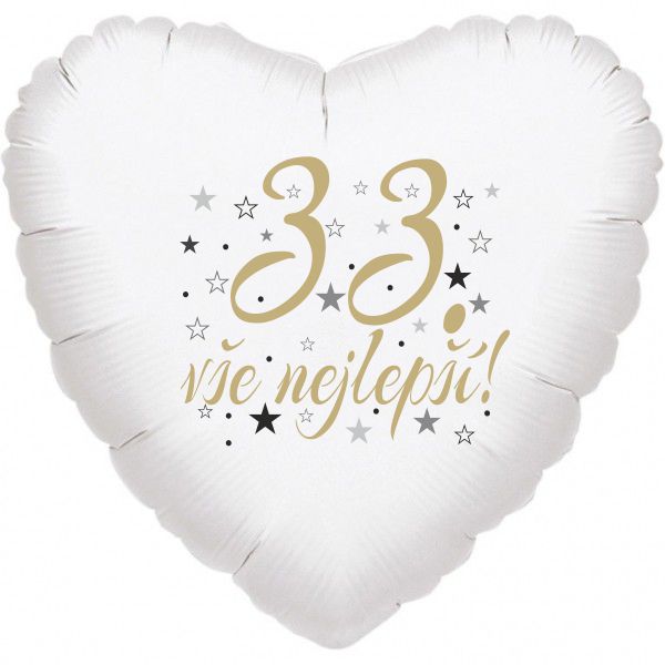 33. narozeniny balónek srdce Fóliové balónky nabízíme v různých tvarech a barvách. Jsou sice dražší než klasické latexové balónky, ale jejich výhodou je kvalita a nepropustnost. Fóliové balónky nafouknuté vzduchem Vám vydrží několik měsíců bez výrazných změn. V případě, že fóliový balónek nafouknete heliem, můžete počítat s dobou létání přibližně 3-7 dní, přičemž létání balónků ovlivňuje okolní teplota i objem samotného balónku. Balónek má samouzavíratelný ventil, který ihned po nafouknutí zamezí úniku vzduchu popř. helia. Při nafukování vzduchem používejte prosím ruční pumpu popř. brčko na pití. Inspiraci pro Vaší dekoraci najdete na internetovém magazínu www.party-narozeniny.cz Velikost nabízených balónků je 42 cm.Je možné nafukovat heliem i vzduchem. Objem 13 litrů. POZOR!!! Všechny námi nabízené fóliové balónky mají samouzavíratelný ventil. V případě nafukování vzduchem, nafukujte ruční pumpou. Po nafouknutí se balonky samy uzavřou. Je možné je taky průběžně přes uzavíratelný ventil dofukovat.