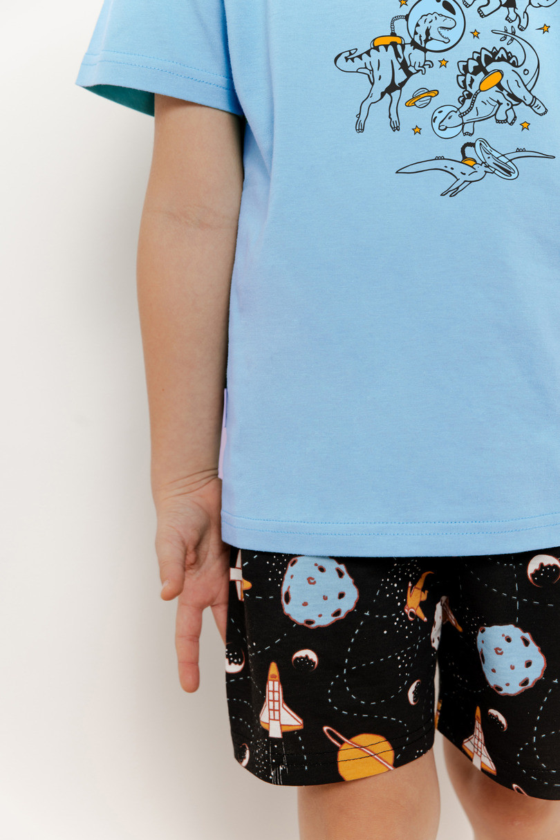 Piżama chłopięca Spencer od Taro to idealny wybór na ciepłe, letnie noce. Wykonana w 100% z wysokiej jakości, miękkiej bawełny, zapewnia doskonały komfort i przewiewność. Koszulka z krótkim rękawem ozdobiona jest kolorowym nadrukiem, który dodaje jej uroku. Do kompletu dołączone są wzorzyste, krótkie spodenki, które gwarantują swobodę ruchów i wygodę noszenia. Całość zapakowana w foliowy woreczek. Skład: 100% Bawełna