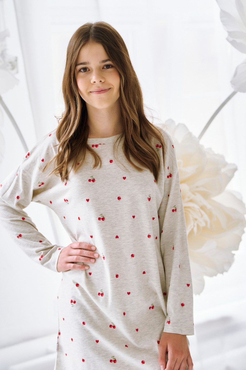 Koszula dziewczęca ADELE 3504 – bawełniana wygoda i rodzinny styl Koszula nocna dziewczęca ADELE w rozmiarach 146–158 to idealna propozycja na chłodniejsze noce i domowy relaks. Wykonana w 100% z miękkiej, oddychającej bawełny, gwarantuje wygodę, swobodę ruchów i przyjemne otulenie skóry. Model z długim rękawem i zaokrąglonym dołem doskonale układa się na sylwetce i nie krępuje ruchów. Koszula dostępna jest również w wersji dla mamy – razem możecie stworzyć uroczy komplet „mama i córka”. Idealna zarówno do snu, jak i jako komfortowa odzież domowa