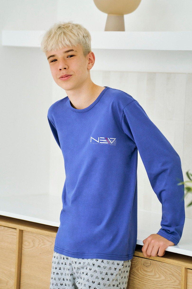 Piżama chłopięca EMIL 3506 to idealna propozycja na komfortowy i spokojny sen dla chłopców w wieku szkolnym. Zestaw składa się z koszulki z długim rękawem oraz długich wzorzystych spodni. Koszulka została wykonana w 100% z miękkiej, oddychającej bawełny, a jej front zdobi efektowny nadruk, który przypadnie do gustu młodszym użytkownikom. Spodnie wykonano z bawełnianej dzianiny z domieszką poliestru, co zapewnia większą trwałość i elastyczność. Wygodna gumka w pasie nie uciska i gwarantuje idealne dopasowanie. Piżama EMIL to połączenie stylu, jakości i wygody – stworzona z myślą o codziennym komforcie dziecka.