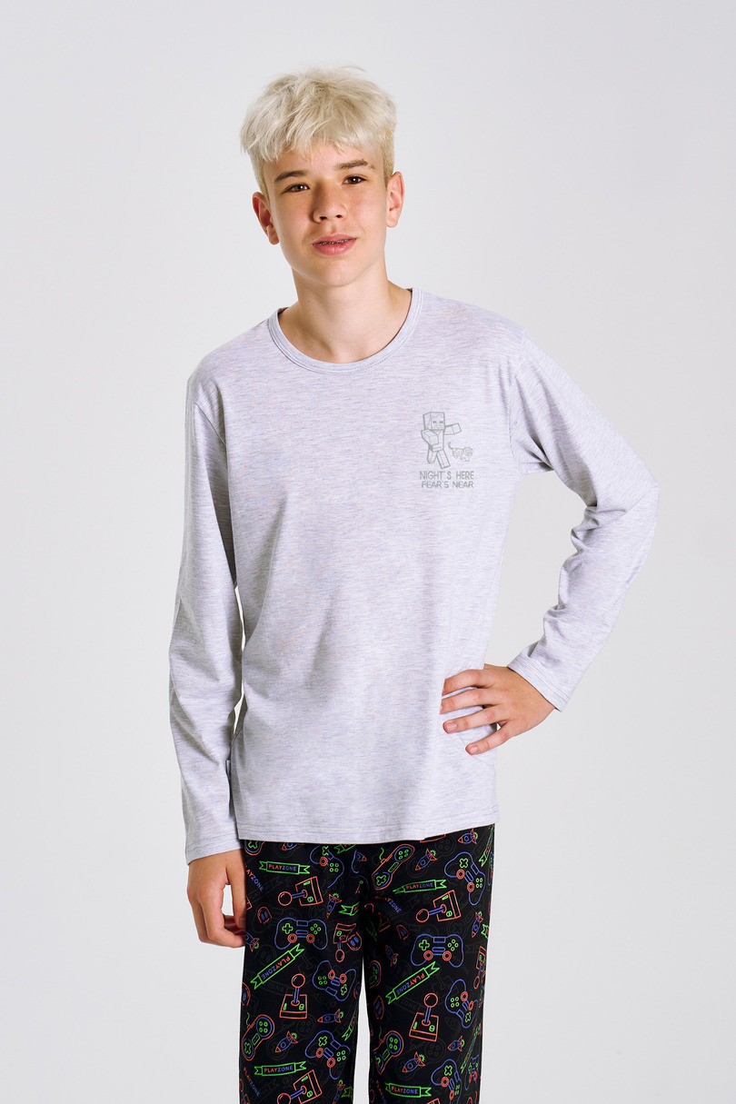 Domů Oblečení a móda Dětské oblečení Dětská pyžama a košilky 3507 CHLAPECKÉ DLOUHÉ PYŽAMO JULIO 146-158 melanžově šedá 146