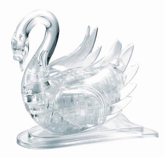 Krystalové puzzle 3D - Bílá labuť - 44 dílků, HCM Kinzel. Trojrozměrné puzzle z barevného průhledného plastu z různě tvarovaných dílků.