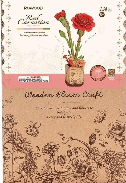 Zpestřete si každodenní život barevnými květinami a překvapte své blízké vlastnoručně vyrobeným dárkem. Darování květiny je vynikající způsob, jak vyjádřit obdarovanému lásku, obdiv či přátelství a popřát mu vše nejlepší. Každá květina má svůj význam. Karafiáty říkají: nikdy na tebe nezapomenu a symbolizují jemnost a krásu.br brTato 3D skládačka je skvělým způsobem, jak si užít kreativní a edukativní hraní a zároveň vytvořit nádherný model květiny, který se může stát netradičním dárkem či ozdobou každého interiéru. Skládání 3D skládačky podporuje rozvoj jemné motoriky, prostorového myšlení a trpělivosti. Je to možnost, jak kombinovat zábavu se vzděláváním. Skládačka je dodávána v nesloženém stavu, zabalená v krabici s podrobným návodem k sestavení, je možné ji zkombinovat s dalšími květinami z této řady a vytvořit velkou kytici do vázy.br brHlavní vlastnosti:br124 dílkůbrdoba skládání 30 minutbrnízká obtížnost sestavení bez použití lepidlabrvýjimečný a realistický vzhledbrvhodné pro děti i dospělébrrozvíjí logické a motorické dovednostibrpodporuje trpělivost dětíbrideální jako dárek nebo jedinečná dekoracebr brRozměry balení: 24,5 x 16,5 cmbrRozměry po sestavení: 12 x 7 x 29 cmbrVěk: 8+brMateriál: dřevo, papírbrDoba sestavení: 30 minbrPočet dílků: 124