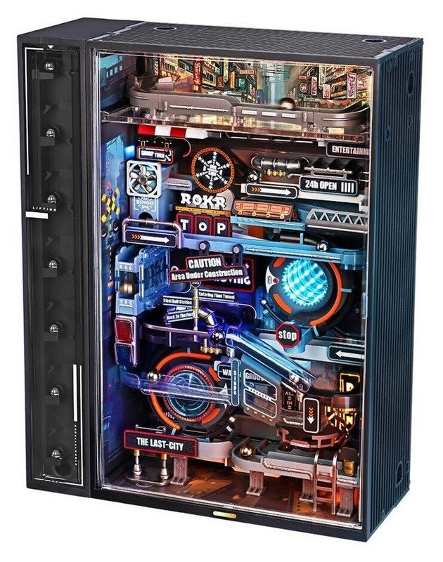Kuličková dráha s automatickým výtahem je dlouhá 187 cm, má dynamické neónové osvětlení a je vybavena účinným motorem s velkým točivým momentem. Toto miniaturní panoráma rušného velkoměsta je navrženo do nejmenších detailů s důrazem na vizuální stránku. Kuličky putují dráhou inspirovanou industriálním steampunkem zběsilou rychlostí v kulisách města mezi budovami, potrubím a továrnami provázené záblesky neonů. Tento modul kuličkové dráhy je propojitelný s dalšími moduly jak vertikálně, tak horizontálně a je možné propojit až 4 moduly. Propojte s modulem 3D mechanická skládačka kuličkové dráhy Město minulosti MR02S pro maximální efekt. K napájení slouží USB-C kabel (je součástí balení). 3D skládačka je skvělým způsobem, jak si užít kreativní a edukativní hraní a zároveň vytvořit netradiční dárek či doplněk interiéru. Skládání skládačky podporuje rozvoj jemné motoriky, prostorového myšlení a trpělivosti. Pozvěte svou rodinu nebo přátele a užijte si zábavné tvoření bez nutnosti použití lepidla nebo nástrojů. Všechny dílky do sebe lehce zapadnou, aby výsledek byl stabilní a odolný. Skládačka je dodávána v nesloženém stavu, zabalená v krabici s podrobným návodem k sestavení. Prosím, vezměte na vědomí, že tento produkt vytváří záblesky světla, které mohou u citlivých osob vyvolat epileptický záchvat. Hlavní vlastnosti: •1 modul města, 1 výtah •130 přesných dílků •doba sestavení 90 min •střední obtížnost sestavení •bez použití lepidla •rozvíjí logické a motorické dovednosti •podporuje trpělivost dětí •LED osvětlení •možnost propojení s MR02S •k napájení slouží USB-C kabel – je součástí balení •podrobný návod k sestavení je součástí balení Rozměry balení: 28,5 x 24 x 10,8 cm Rozměry po sestavení: 18 x 7,7 x 23,1 cm Věk: 14+ Materiál: ABS plast, polykarbonát, kov Doba sestavení: 90 min Napájení: USB-C kabel – je součástí balení Počet dílků: 130