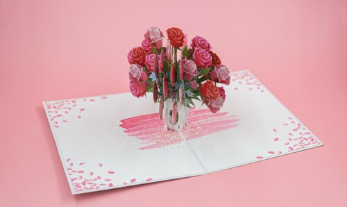 Růže patří mezi královny všech květin. Vyjádřete svou lásku pomocí nádherného a jedinečného 3D pop-up přání s kyticí růžových růží. Toto přání je ideálním dárkem pro každou romantickou příležitost. Součástí balení je Magická obálka (která tuto krásu uschová do posledního okamžiku) a Lístek uvnitř přání (kde lze napsat upřímné blahopřání).