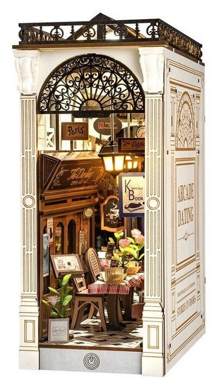Proměňte svou knihovnu v romantický kout díky skládačce pasáže s knižním zákoutím a kavárnou. Malebná pasáž v evropském stylu vytváří dokonalou atmosféru pro první rande či přátelská setkání. Teplé světlo tří zavěšených lamp naplňuje pasáž útulnou atmosférou a upozorní na posezení zastrčené mezi kavárnou a knihkupectvím. Kavárna vyzařuje pohodu díky rustikálním dřevěným detailům, zatímco fasáda knihkupectví s vintage nápisy a knihami nabízí pohled do světa nekonečných příběhů. Horní část je ozdobena detailně propracovanou mříží a zábradlím na střeše. Pozvěte svou rodinu nebo přátele a užijte si zábavné tvoření bez nutnosti použití lepidla nebo nástrojů. Všechny díly skládačky jsou přesně vyřezané a lehce do sebe zapadnou, aby výsledek byl stabilní a odolný. Plastová fólie ochrání Váš výtvor před prachem a nečistotami. Dodáváno s podrobným návodem k sestavení. Hlavní vlastnosti: •148 precizně vyřezaných dílů •snadná montáž bez použití lepidla a nástrojů •rozvíjí logické a motorické dovednosti •podporuje trpělivost •ideální jako dárek nebo jedinečná dekorace •střední obtížnost •LED osvětlení •k napájení slouží 2x AAA baterie (nejsou součástí balení) •včetně ochranné fólie •návod k sestavení je součástí balení Rozměry balení: 31,6 x 7,9 x 23,1 cm Rozměry po sestavení: 10,6 x 19,5 x 25,5 cm Věk: 14+ Materiál: dřevo, plast Doba sestavení: 3,5 hod Baterie: 2x AAA/LR03/AM4 1,5 V (nejsou součástí balení) Počet dílů: 148 Váha: 2,61 Kg