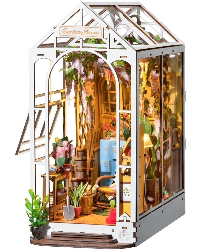 Seznámení se s vaší budoucí zarážkou na knihy nebylo ještě nikdy tak přitažlivé a zábavné! Teď si můžete vytvořit svůj vlastní svět na polici s knihami pomocí této 3D puzzle zarážky na knihy Garden House. Tato dekorativní zarážka na knihy vypadá jako miniaturní skleník - a dokonce svítí v noci, díky vestavěným LED světlům. 3D puzzle Garden House od Rolife je nejen zarážkou na knihy - je to také kompletní zážitek ze stavění a dekorování. Pokud jste milovník knih, kreativní duše nebo pokud máte rádi jedinečné domácí dekorace, tato zarážka na knihy je jako stvořená pro vás! S jednoduchými instrukcemi a všemi potřebnými součástkami, které jsou součástí balení, můžete vybudovat svou vlastní miniaturní zahradu.br brPředstavte si, jak si večer po práci sednete do svého oblíbeného křesla s šálkem teplého čaje, otevřete novou knihu a váš pohled sklouzne na tu nádhernou miniaturní zahradu mezi knihami, kterou jste sestavili vlastníma rukama. Váš 3D puzzle Garden House třpytící se v měkkém světle LED světel, přidá atmosféru do vašeho čtení. Dělejte to, co vás baví a učiňte své čtení ještě magičtějším.br brBaterie 2 kusy (AAA/LR03/AM4 1,5V) nejsou součástí balení.br brHlavní vlastnosti:br176 precizně vyřezaných dílůbrmateriál dřevobrdoba montáže cca 5 hodinbrvhodné od 14 let