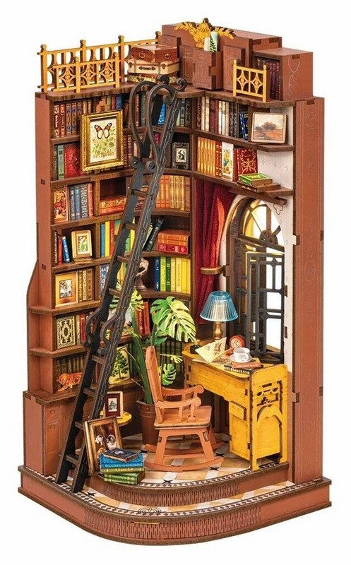 Když je svět kolem Vás hlučný, klid najdete v tichém zákoutí s knihovničkou v útulné studovně v britském elegantním stylu. V každém detailu se odráží poklidná atmosféra starobylé knihovny, od vintage polic, přes stylový nábytek až po promyšlené doplňky, které dohromady vytvářejí uzavřený svět plný ticha a soustředění. Klasická dlažba s motivy hvězd a geometrických vzorů odkazuje na počátek 20. století a dodává scéně historickou atmosféru. Zarážka na knihy a dekorace v jednom krásně propojuje praktičnost s estetikou a oživí každou knihovnu, čtenářský koutek či pracovní stůl. 3D skládačka je skvělý způsob, jak si užít kreativní a edukativní hraní a zároveň vytvořit nádherný model, který se může stát netradičním dárkem či ozdobou interiéru. Skládání podporuje rozvoj jemné motoriky, prostorového myšlení a trpělivosti. Je to možnost, jak kombinovat zábavu se vzděláváním. Všechny přesně vyřezané dílky do sebe lehce zapadnou bez použití lepidla či nástrojů, aby výsledek byl stabilní a odolný. Skládačka je dodávána v nesloženém stavu, zabalená v krabici s podrobným návodem k sestavení. K napájení slouží 2x AAA /LR03/AM4 1,5 V (nejsou součástí balení). Hlavní vlastnosti: •196 dílků •doba skládání 3 hodiny •střední obtížnost sestavení •LED osvětlení •sestavení bez použití lepidla a nástrojů •výjimečný vzhled •vhodné pro děti i dospělé •rozvíjí logické a motorické dovednosti •podporuje trpělivost dětí •ideální dárek nebo jedinečná dekorace •napájení pomocí 2x AAA /LR03/AM4 1,5 V (nejsou součástí balení) Rozměry po sestavení: 11,8 x 11,8 x 24,9 cm Rozměry balení: 31,6 x 23,2 x 6,5 cm Věk: 14+ Materiál: dřevo, papír Počet dílků: 196 Doba sestavení: 3 hod Napájení: 2x AAA /LR03/AM4 1,5 V (nejsou součástí balení)