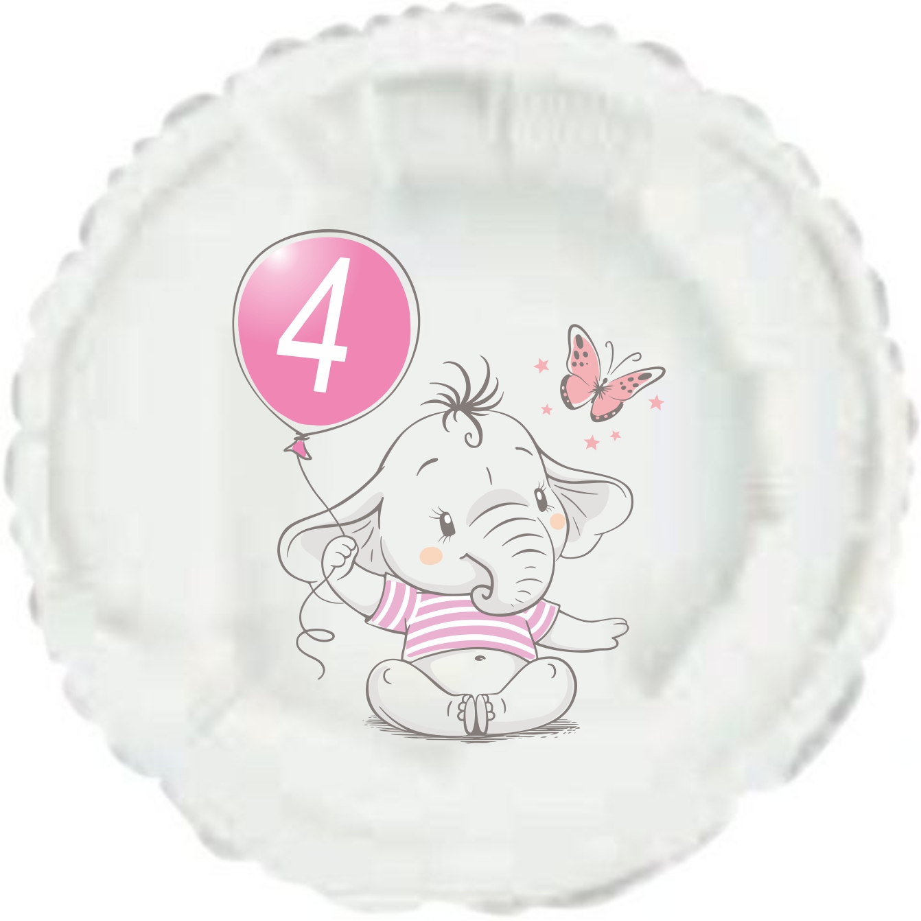 Čtvrté narozeniny - fóliový balónek s růžovým slonem. Krásně vyzdobí dětskou párty. Narozeninové balónky okouzlí malého oslavence i hosty a vytvoří nezapomenutelnou atmosféru. Fóliové balónky mají samouzavíratelný ventil, takže po nafouknutí se samy uzavřou a helium ani vzduch již unikat nebude.  Nafukovat můžete vzduchem s použitím ruční pumpy popř. můžete použít brčko na pití. Dětské foliové balónky nafouknuté vzduchem vydrží v nezměněném tvaru celé týdny. Pokud chcete překvapit oslavence létajícími balónky, je nutné použít na nafouknutí helium. Balónky nafouknuté heliem vydrží létat 3-7 cní, přičemž dobu létání ovlivňuje okolní teplota a objem samotného balónku.  Slavnostní výzdobu oživí hotové sady balónků. Chcete připravit dokonalou párty? Vyzkoušejte balónky s potiskem jména oslavence anebo balónky s fotkou oslavence.  Velikost nabízených balónků je 42 cm a objem 13 litrů.