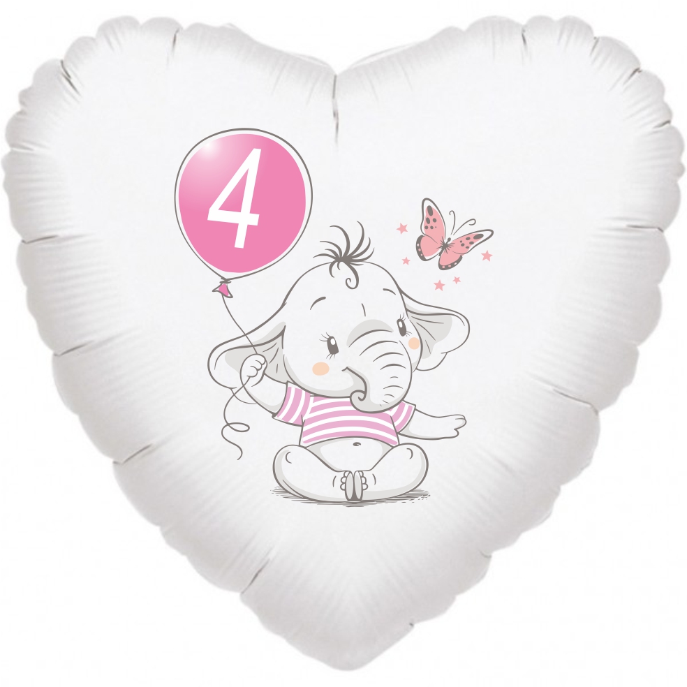 Čtvrté narozeniny - fóliový balónek s růžovým slonem. Krásně vyzdobí dětskou párty. Narozeninové balónky okouzlí malého oslavence i hosty a vytvoří nezapomenutelnou atmosféru. Fóliové balónky mají samouzavíratelný ventil, takže po nafouknutí se samy uzavřou a helium ani vzduch již unikat nebude.  Nafukovat můžete vzduchem s použitím ruční pumpy popř. můžete použít brčko na pití. Dětské foliové balónky nafouknuté vzduchem vydrží v nezměněném tvaru celé týdny. Pokud chcete překvapit oslavence létajícími balónky, je nutné použít na nafouknutí helium. Balónky nafouknuté heliem vydrží létat 3-7 cní, přičemž dobu létání ovlivňuje okolní teplota a objem samotného balónku.  Slavnostní výzdobu oživí hotové sady balónků. Chcete připravit dokonalou párty? Vyzkoušejte balónky s potiskem jména oslavence anebo balónky s fotkou oslavence.  Velikost nabízených balónků je 42 cm a objem 13 litrů.