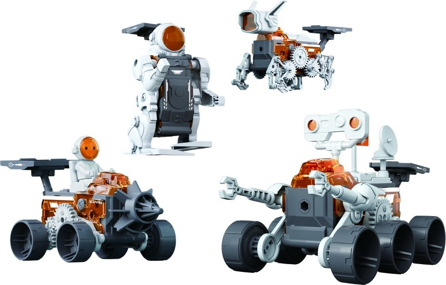 4v1 Vesmírný set je kreativní a edukativní model, který umožňuje dětem i dospělým experimentovat s různými zdroji energie a jejich aplikací v praxi. Tento set obsahuje čtyři různé modely, které využívají tři různé zdroje energie: sílu slané vody, solární energii a elektrickou energii. Hlavní vlastnosti a funkce: Tři různé energie: Elektrická energie: Ujistěte se, že modely mohou fungovat za jakýchkoli podmínek. Elektrická energie poskytuje stabilní pohon i v případě, že sluneční svit nebo slaná voda nejsou dostupné. Solární energie: Tento model využívá solární energii, což je ideální pro jasné a slunečné dny. Tento typ energie je ekologický a šetrný k životnímu prostředí. Slaná voda: Stačí přidat 2–5 kapek slané vody (poměr 1:5), aby model začal jezdit. Tento způsob využívá chemickou reakci k výrobě energie, což je skvělý příklad jednoduchého vědeckého principu. Doba sestavení: Přibližně 1–2 hodiny. Tento časový rámec je ideální pro sestavení a pochopení základních principů fungování různých energií. Složitost: Úroveň složitosti je 2 hvězdy z 5, což znamená, že set je vhodný pro děti a začátečníky, kteří se chtějí dozvědět více o energii a jejích aplikacích v mechanických systémech. Tento set je skvělým nástrojem pro rozvoj zájmu o vědu a technologie. Umožňuje dětem pochopit různé formy energie a jejich praktické využití, a to prostřednictvím zábavného a interaktivního procesu sestavování modelů. Set obsahuje celkem 138 dílů