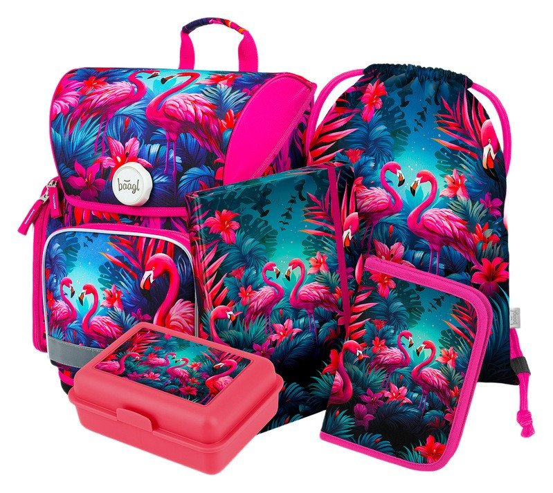 ŠKOLNÍ AKTOVKA ERGO PLAMEŇÁCI • Školní aktovka ERGO s vyztuženým tělem, vhodná od 1. třídy ZŠ.• Posuvný zádový systém ERGO ADJUSTABLE SYSTEM umožňuje nastavení optimální polohy vzhledem k výšce dítěte.• Ergonomicky tvarovaná záda, plně nastavitelné ramenní, prsní a boční kompresní popruhy pro optimální přizpůsobení postavě.• Kvalitní magnetické zapínání Fidlock k otevření aktovky postačí pouhé otočení přezky a uzavření aktovky probíhá díky magnetickému systému automaticky, bez nutnosti manuálního zapínání. • Uvnitř aktovky je průhledná kapsa s rozvrhem a vnitřní organizér umožňující rovnoměrné rozložení hmotnosti.• Izolovaná přední kapsa a dvě symetrické kapsy na bocích aktovky, které jsou vhodné pro jednu z našich láhví na pití.• Lehká vyztužená konstrukce a pevné dno drží stabilní tvar aktovky. • Velmi nízká hmotnost aktovky, méně než 1 200 g.• Objem aktovky je 19 l, nosnost 6 kg.• Tělo aktovky je vyrobené z pevného voděodolného materiálu.• Řada reflexních prvků zajistí bezpečnost dítěte.• Aktovka je vybavena trendy přívěskem.• Aktovky z řady ERGO byly testovány a certifikovány v akreditované zkušební laboratoři. ŠKOLNÍ PENÁL JEDNOPATROVÝ PLAMEŇÁCI • Klasický školní jednopatrový penál s dvěma chlopněmi.• Uzamykatelný na kvalitní zip YKK.• Bez náplně. SÁČEK PLAMEŇÁCI • Sáček na obuv či jiné drobnosti pro vaše volnočasové aktivity.• Sáček je vybaven karabinkou díky, které ho lze připevnit na aktovku.• Sáček je vyroben z pevného omyvatelného materiálu.• Zdrhování pomocí pevných tkanic, které zároveň umožňují nošení na zádech.BOX NA SVAČINU PLAMEŇÁCI • Plastový box na svačinu v růžové barvě. • Box má uzavírání na jeden zámek a dělicí přepážku.• Nedoporučujeme mýt v myčceDESKY NA ŠKOLNÍ SEŠITY A4 PLAMEŇÁCI • Desky z tvrdého kartonu na úschovu sešitů a učebnic.• Lesklý lakovaný povrh zvyšuje odolnost.• Vnitřní kapsa a přední klopa zajištěná gumičkou proti vypadnutí.• Formát A4.