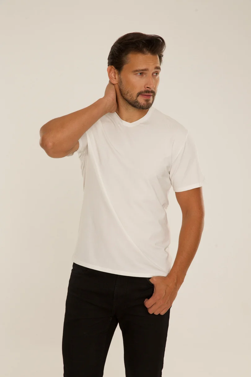 Koszulka męska 828 to uniwersalny T-shirt, który łączy w sobie komfort i nowoczesny styl. Wykonana z wysokiej jakości mieszanki materiałów (47% modal, 47% bawełna, 6% elastan), jest wyjątkowo miękka, elastyczna i przyjemna w dotyku. Naturalne włókna zapewniają przewiewność i doskonałe dopasowanie do sylwetki, co czyni koszulkę idealnym wyborem na co dzień. Koszulka ma klasyczny krótki rękaw oraz dekolt w szpic, który podkreśla męski charakter stylizacji. Świetnie sprawdzi się zarówno jako samodzielny element garderoby, jak i pod bluzę czy marynarkę.