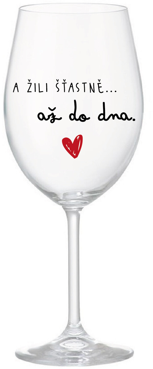 Vinná čirá sklenice s originálním motivem A ŽILI ŠŤASTNĚ AŽ DO DNA je krásným a osobitým dárkem, které ale využijete i Vy sami třeba ve chvílích, kdy si budete chtít zpříjemnit náročný den. Tyto originální vinné sklenice jsou totiž nejen pro výjimečné události, ale i pro běžné večery, které si chcete zpříjemnit sklenkou dobrého vína. Jistě proto potěší každého milovníka vína, i toho, kdo si umí svůj život vychutnat plnými doušky. Materiál sklo. Vyrobené s láskou v ČR