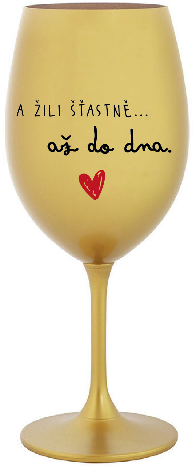 Vinná zlatá sklenice s originálním motivem A ŽILI ŠŤASTNĚ AŽ DO DNA je krásným a osobitým dárkem, které ale využijete i Vy sami třeba ve chvílích, kdy si budete chtít zpříjemnit náročný den. Tyto originální vinné sklenice jsou totiž nejen pro výjimečné události, ale i pro běžné večery, které si chcete zpříjemnit sklenkou dobrého vína. Jistě proto potěší každého milovníka vína, i toho, kdo si umí svůj život vychutnat plnými doušky. Materiál sklo. Vyrobené s láskou v ČR