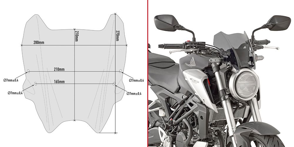 A1164 plexi kouřové Honda CB 125 R (18-25)/CB 300 R (18-25), vxš 210x280 mm, včetně montážní sady