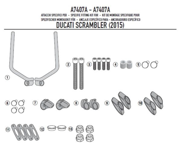 Montážní sada pro plexi 7407A. Pro Ducati Scrambler Icon 800 (15-23), pro Ducati Scrambler 400 (16-21).