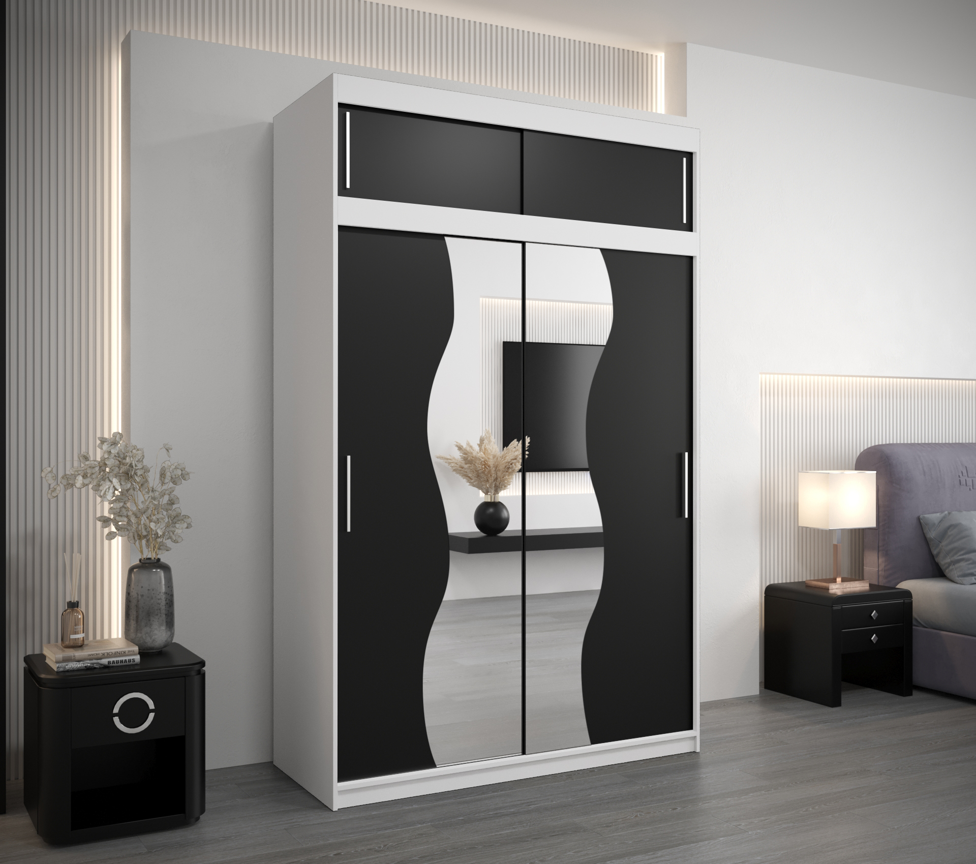 Šatní skříň Abi Mr s nástavcem Dveře: Černá, Rozměr: 150 cm, Korpus: Bílá
