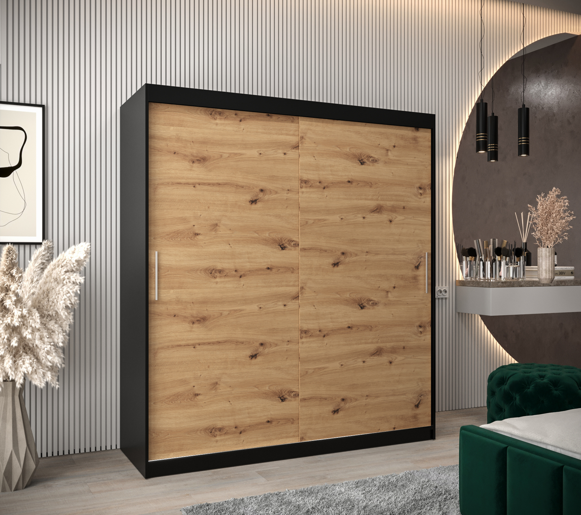 Šatní skříň Abi T0 Hledáte moderní šatní skříň s posuvnými dveřmi, která vás okouzlí svým originálním vzhledem? Nehledejte nic jiného než šatní skříň Abi T0! Šatní skříň nabízí velký úložný prostor a kvalitu. Můžete si vybrat z několika velikostí a barev, takže se skříň přizpůsobí vašim potřebám. • Vlastnosti šatní skříně Korpus a posuvné dveře Korpus a dveře jsou vyrobeny z kvalitní laminované dřevotřískové desky o síle 16 mm. PVC hrany Hrany desek jsou opatřeny PVC dýhou o síle 0,5 mm Bez zrcadla Šatní skříň je bez zrcadla Úchyty K otevření šatní skříně vám poslouží plastové stříbrné úchyty. Vnitřní uspořádání Základem vnitřního uspořádání jsou dvě šatní šatní a police - lze si dokoupit zásuvky. • Barevné varianty: Šatní skříň Abi T0 je dostupná v dekorech a barvách dub artisan, dub sonoma, černá a bílá. Všechny tyto odstíny lze vzájemně kombinovat. dub artisan dub sonoma černá bílá • Rozměry 200 cm celková výška 6 rozměrů celková šířka 62 cm celková hloubka 16 mm tloušťka desky 6 rozměrů šířka 100 cmšířka 120 cmšířka 150 cmšířka 180 cmšířka 200 cmšířka 250 cm Detailní rozpis jednotlivých balíků při přepravěV odkazu níže naleznete podrobnosti týkající se počtu balíků, jejich rozměry a váhuRozpis jednotlivých balíků • ZásuvkyPraktické rozšíření univerzální a stylové skříně Abi o nástavec se zásuvkami. Elegantní rozšíření se dvěma, nebo od šířky 180 cm, dokonce se čtyřmi šuplíky je ideální pro rozšíření skříně o další úložný prostor. Barevné provedení zásuvek je stejné jako korpus šatní skříně. vnitřní uspořádání do šířky 150 cm rozšíření o šuplíky u šířky do 150 cm vnitřní uspořádání od šířky 180 cm rozšíření o šuplíky od šířky 180 cm • Další modely šatních skříní z řady AbiZaujala Vás tato šatní skříň, ale představovali by jste si jiný rozměr, barevnou kombinaci nebo variantu zrcadla? Jedním kliknutím na odkaz níže se vám nabídnou další šatní skříně. A další výhodou těchto šatních skříní je i možnost dokoupení nástavců. Zobrazit další modely... • Další součásti ložniceVybavujete nový byt nebo chcete obměnit svůj stávají nábytek v ložnici? Postel je středem veškerého dění v místnosti. V naší nabídce naleznete veškeré komponenty ložnice.Zobrazit další nábytek.... • Upozornění Odstíny prezentované na fotografiích jsou ilustračním materiálem, barvy se mohou lišit od vyobrazení na fotografiích podle nastavení vašeho zobrazovacího zařízení. Zboží dodáváme vlastní dopravou! Zboží rozvážíme také o víkendu. Dodáváme v demontu s podrobným instruktážním návodem. Objednat si také můžete naše doplňkové služby jako je montáž na místě, výnos do patra a nebo ekologickou likvidaci starého nábytku. Zájem o služby přidejte do košíku v objednávce. Ceník doplňkových služeb - výnos, ekolikvidace a montáž Montáž na místě Pokud se nechcete trápit s montáží, rádi Vám sestavíme nábytek na místě Výnos až do bytu Nechcete se tahat se zakoupeným zbožím? Rádi vám nábytek vyneseme až do bytu. Doprava Paul nábytek Zboží vám dopravíme až k domu naší vlastní dopravou, aby nedošlo k poškození cizím dopravcem. Ekologická likvidace Pokud si přejete, můžeme odvést starý nábytek a ekologicky jej nechat zlikvidovat.