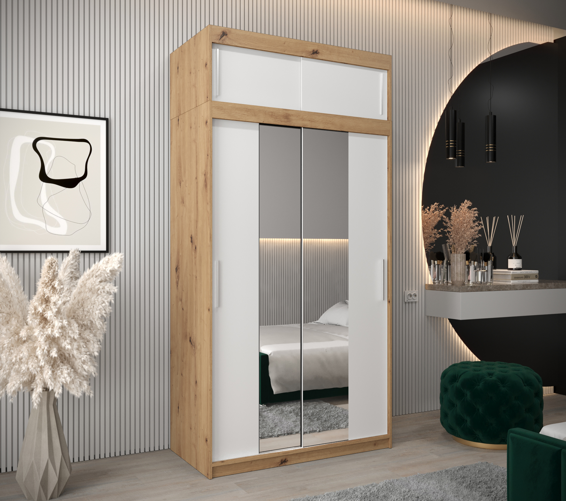 Šatní skříň Abi T1 s nástavcem Hledáte moderní šatní skříň s posuvnými dveřmi, která vás okouzlí svým originálním vzhledem? Nehledejte nic jiného než šatní skříň Abi T1 s nástavcem! Šatní skříň nabízí velký úložný prostor a kvalitu. Můžete si vybrat z několika velikostí a barev, takže se skříň přizpůsobí vašim potřebám. • Vlastnosti šatní skříně Korpus a posuvné dveře Korpus a dveře jsou vyrobeny z kvalitní laminované dřevotřískové desky o síle 16 mm. PVC hrany Hrany desek jsou opatřeny PVC dýhou o síle 0,5 mm Zrcadlo Šatní skříň je se zrcadlem. Úchyty K otevření šatní skříně vám poslouží plastové stříbrné úchyty. Vnitřní uspořádání Základem vnitřního uspořádání jsou dvě šatní šatní a police - lze si dokoupit zásuvky. • Barevné varianty: Šatní skříň Abi T1 s nástavcem je dostupná v dekorech a barvách dub artisan, dub sonoma, černá a bílá. Všechny tyto odstíny lze vzájemně kombinovat. dub artisan dub sonoma černá bílá • Rozměry 240 cm celková výška 6 rozměrů celková šířka 62 cm celková hloubka 16 mm tloušťka desky 6 rozměrů šířka 100 cmšířka 120 cmšířka 150 cmšířka 180 cmšířka 200 cmšířka 250 cm Detailní rozpis jednotlivých balíků při přepravěV odkazu níže naleznete podrobnosti týkající se počtu balíků, jejich rozměry a váhuRozpis jednotlivých balíků • ZásuvkyPraktické rozšíření univerzální a stylové skříně Abi o nástavec se zásuvkami. Elegantní rozšíření se dvěma, nebo od šířky 180 cm, dokonce se čtyřmi šuplíky je ideální pro rozšíření skříně o další úložný prostor. Barevné provedení zásuvek je stejné jako korpus šatní skříně. vnitřní uspořádání do šířky 150 cm rozšíření o šuplíky u šířky do 150 cm vnitřní uspořádání od šířky 180 cm rozšíření o šuplíky od šířky 180 cm • Další modely šatních skříní z řady AbiZaujala Vás tato šatní skříň, ale představovali by jste si jiný rozměr, barevnou kombinaci nebo variantu zrcadla? Jedním kliknutím na odkaz níže se vám nabídnou další šatní skříně. A další výhodou těchto šatních skříní je i možnost dokoupení nástavců. Zobrazit další modely... • Další součásti ložniceVybavujete nový byt nebo chcete obměnit svůj stávají nábytek v ložnici? Postel je středem veškerého dění v místnosti. V naší nabídce naleznete veškeré komponenty ložnice.Zobrazit další nábytek.... • Upozornění Odstíny prezentované na fotografiích jsou ilustračním materiálem, barvy se mohou lišit od vyobrazení na fotografiích podle nastavení vašeho zobrazovacího zařízení. Zboží dodáváme vlastní dopravou! Zboží rozvážíme také o víkendu. Dodáváme v demontu s podrobným instruktážním návodem. Objednat si také můžete naše doplňkové služby jako je montáž na místě, výnos do patra a nebo ekologickou likvidaci starého nábytku. Zájem o služby přidejte do košíku v objednávce. Ceník doplňkových služeb - výnos, ekolikvidace a montáž Montáž na místě Pokud se nechcete trápit s montáží, rádi Vám sestavíme nábytek na místě Výnos až do bytu Nechcete se tahat se zakoupeným zbožím? Rádi vám nábytek vyneseme až do bytu. Doprava Paul nábytek Zboží vám dopravíme až k domu naší vlastní dopravou, aby nedošlo k poškození cizím dopravcem. Ekologická likvidace Pokud si přejete, můžeme odvést starý nábytek a ekologicky jej nechat zlikvidovat. Zboží dodáváme po celé České republice! Dodáváme v demontu s podrobným instruktážním návodem. Objednat si také můžete naše doplňkové služby jako je montáž na místě, výnos do patra nebo ekologickou likvidaci starého nábytku. Požadované služby přidejte do košíku v objednávce. Montáž na místě Pokud se nechcete trápit s montáží, rádi Vám sestavíme nábytek na místě Výnos až do bytu Nechcete se tahat se zakoupeným zbožím? Rádi vám nábytek vyneseme až do bytu. Doprava ČR Zboží vám dopravíme až k domu za první uzamykatelné dveře po celé České republice. Ekologická likvidace Pokud si přejete, můžeme odvést starý nábytek a ekologicky jej nechat zlikvidovat. Ceník doplňkových služeb - výnos, ekolikvidace a montáž Upozornění Produkty prezentované na fotografiích jsou ilustračním materiálem, barvy se mohou lišit od vyobrazení na fotografiích podle nastavení vašeho zobrazovacího zařízení.