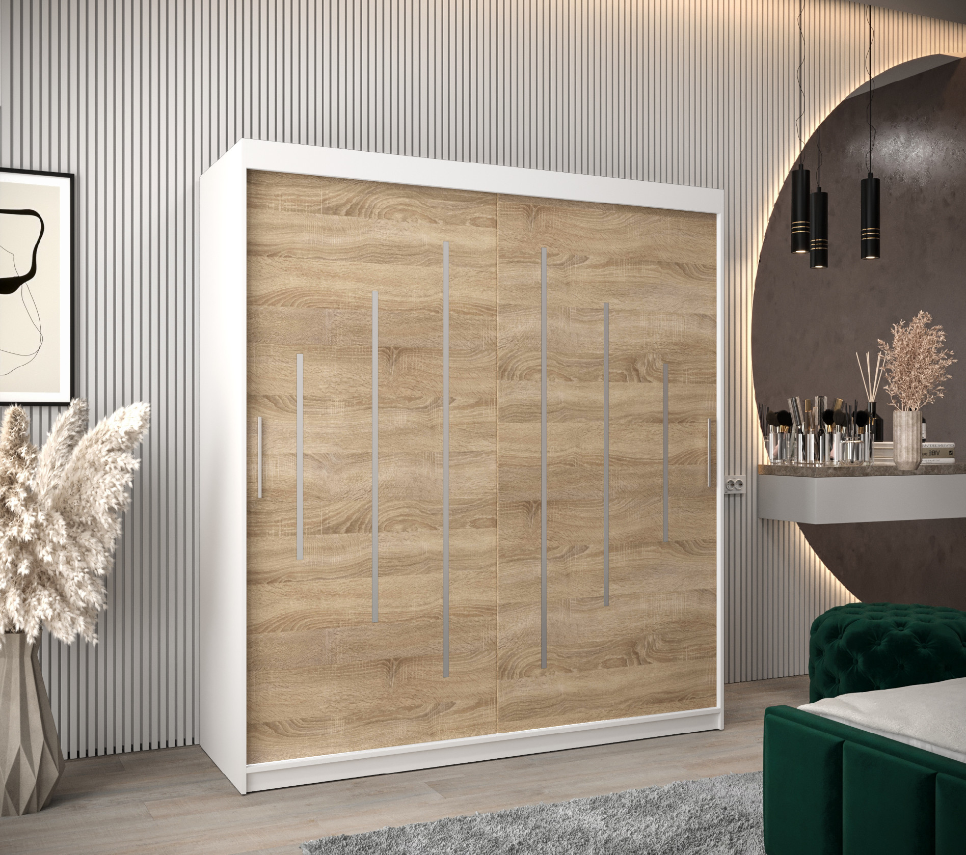 Šatní skříň Abi Y0 Hledáte moderní šatní skříň s posuvnými dveřmi, která vás okouzlí svým originálním vzhledem? Nehledejte nic jiného než šatní skříň Abi Y0! Šatní skříň nabízí velký úložný prostor a kvalitu. Můžete si vybrat z několika velikostí a barev, takže se skříň přizpůsobí vašim potřebám. • Vlastnosti šatní skříně Korpus a posuvné dveře Korpus a dveře jsou vyrobeny z kvalitní laminované dřevotřískové desky o síle 16 mm. PVC hrany Hrany desek jsou opatřeny PVC dýhou o síle 0,5 mm. Ozdobné pásky Posuvné dveře jsou zdobené stříbrnými plastovými pásky, které je nutno při montáži nalepit. Bez zrcadla Šatní skříň je bez zrcadla. Úchyty K otevření šatní skříně vám poslouží plastové stříbrné úchyty. Vnitřní uspořádání Základem vnitřního uspořádání jsou dvě šatní šatní a police - lze si dokoupit zásuvky. • Barevné varianty: Šatní skříň Abi Y0 je dostupná v dekorech a barvách dub artisan, dub sonoma, černá a bílá. Všechny tyto odstíny lze vzájemně kombinovat. dub artisan dub sonoma černá bílá • Rozměry 200 cm celková výška 6 rozměrů celková šířka 62 cm celková hloubka 16 mm tloušťka desky 6 rozměrů šířka 100 cmšířka 120 cmšířka 150 cmšířka 180 cmšířka 200 cmšířka 250 cm Detailní rozpis jednotlivých balíků při přepravěV odkazu níže naleznete podrobnosti týkající se počtu balíků, jejich rozměry a váhuRozpis jednotlivých balíků • ZásuvkyPraktické rozšíření univerzální a stylové skříně Abi o nástavec se zásuvkami. Elegantní rozšíření se dvěma, nebo od šířky 180 cm, dokonce se čtyřmi šuplíky je ideální pro rozšíření skříně o další úložný prostor. Barevné provedení zásuvek je stejné jako korpus šatní skříně. vnitřní uspořádání do šířky 150 cm rozšíření o šuplíky u šířky do 150 cm vnitřní uspořádání od šířky 180 cm rozšíření o šuplíky od šířky 180 cm • Další modely šatních skříní z řady AbiZaujala Vás tato šatní skříň, ale představovali by jste si jiný rozměr, barevnou kombinaci nebo variantu zrcadla? Jedním kliknutím na odkaz níže se vám nabídnou další šatní skříně. A další výhodou těchto šatních skříní je i možnost dokoupení nástavců. Zobrazit další modely... • Další součásti ložniceVybavujete nový byt nebo chcete obměnit svůj stávají nábytek v ložnici? Postel je středem veškerého dění v místnosti. V naší nabídce naleznete veškeré komponenty ložnice.Zobrazit další nábytek.... • Upozornění Odstíny prezentované na fotografiích jsou ilustračním materiálem, barvy se mohou lišit od vyobrazení na fotografiích podle nastavení vašeho zobrazovacího zařízení. Zboží dodáváme vlastní dopravou! Zboží rozvážíme také o víkendu. Dodáváme v demontu s podrobným instruktážním návodem.  Objednat si také můžete naše doplňkové služby jako je montáž na místě, výnos do patra a nebo ekologickou likvidaci starého nábytku. Zájem o služby přidejte do košíku v objednávce.  Ceník doplňkových služeb - výnos, ekolikvidace a montáž Montáž na místě Pokud se nechcete trápit s montáží, rádi Vám sestavíme nábytek na místě Výnos až do bytu Nechcete se tahat se zakoupeným zbožím? Rádi vám nábytek vyneseme až do bytu. Doprava Paul nábytek Zboží vám dopravíme až k domu naší vlastní dopravou, aby nedošlo k poškození cizím dopravcem. Ekologická likvidace Pokud si přejete, můžeme odvést starý nábytek a ekologicky jej nechat zlikvidovat. Zboží dodáváme po celé České republice! Dodáváme v demontu s podrobným instruktážním návodem.  Objednat si také můžete naše doplňkové služby jako je montáž na místě, výnos do patra nebo ekologickou likvidaci starého nábytku. Požadované služby přidejte do košíku v objednávce.  Montáž na místě Pokud se nechcete trápit s montáží, rádi Vám sestavíme nábytek na místě Výnos až do bytu Nechcete se tahat se zakoupeným zbožím? Rádi vám nábytek vyneseme až do bytu. Doprava ČR Zboží vám dopravíme až k domu za první uzamykatelné dveře po celé České republice. Ekologická likvidace Pokud si přejete, můžeme odvést starý nábytek a ekologicky jej nechat zlikvidovat. Ceník doplňkových služeb - výnos, ekolikvidace a montáž Upozornění Produkty prezentované na fotografiích jsou ilustračním materiálem, barvy se mohou lišit od vyobrazení na fotografiích podle nastavení vašeho zobrazovacího zařízení.