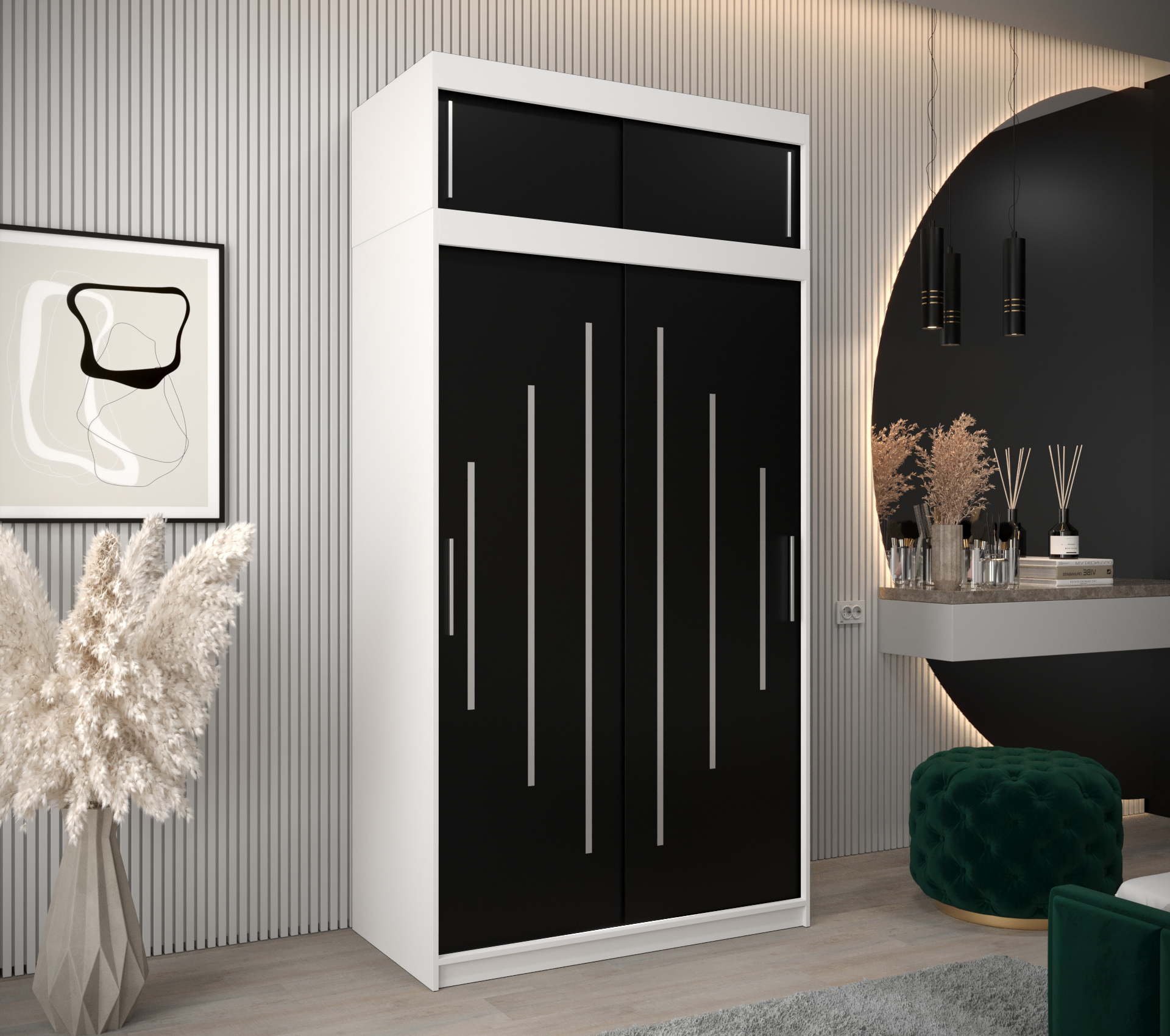 Šatní skříň Abi Y0 s nástavcem Barva korpusu: Bílá, Rozměry: 120 cm, Dveře: Černá