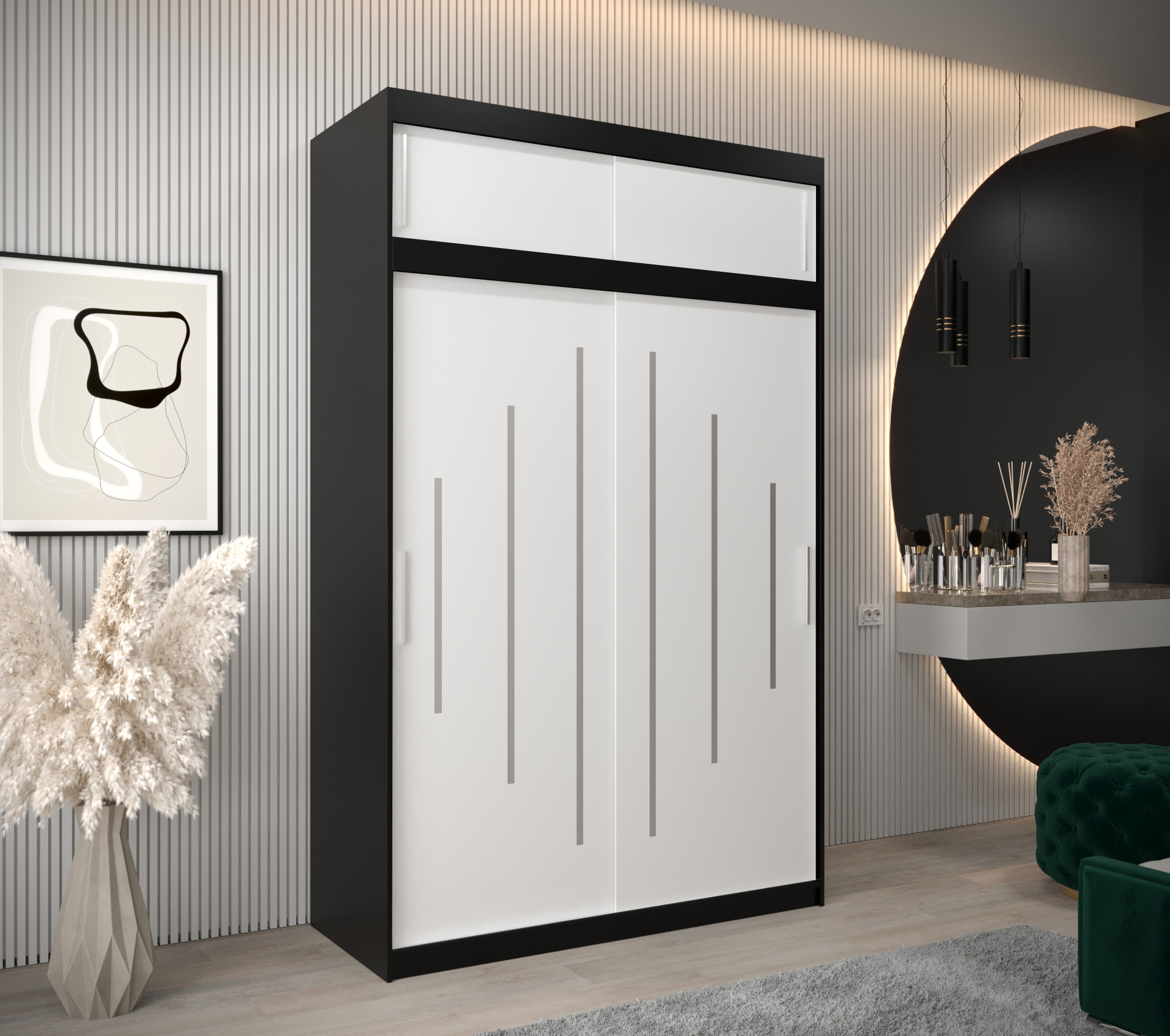 Šatní skříň Abi Y0 s nástavcem Barva korpusu: Černá, Rozměry: 150 cm, Dveře: Bílá