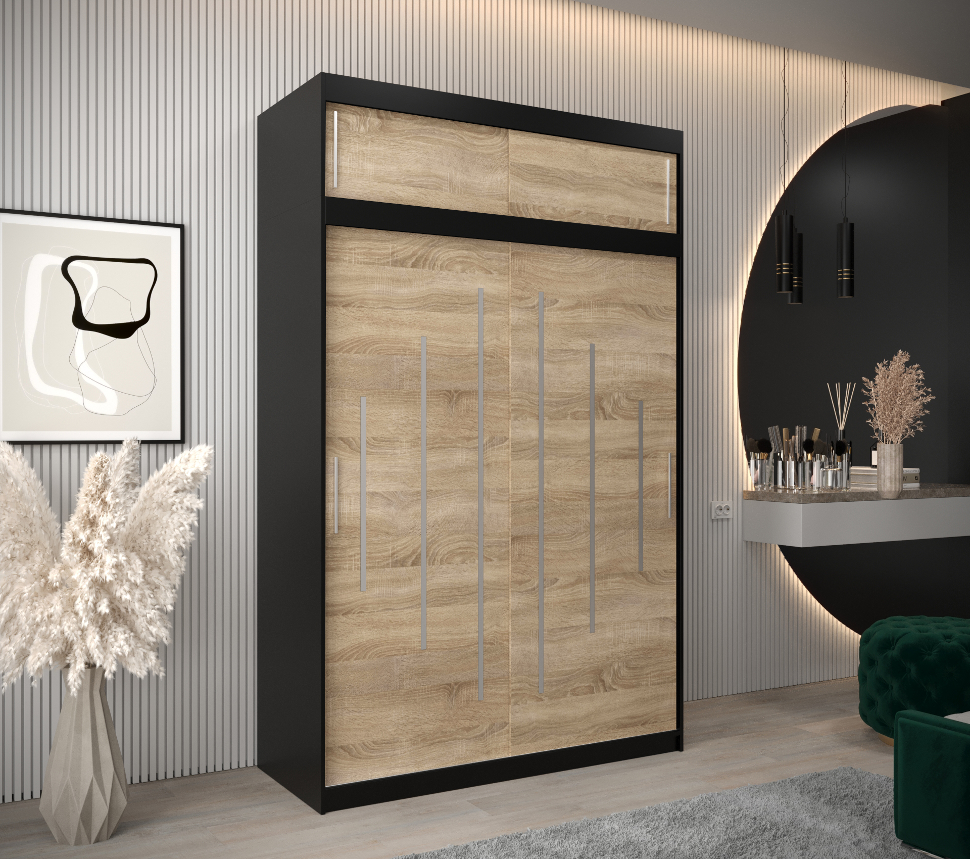 Domů Nábytek Ložnice Ložnicové sestavy Šatní skříň Abi Y0 s nástavcem Barva korpusu: Černá, Rozměry: 150 cm, Dveře: Dub sonoma
