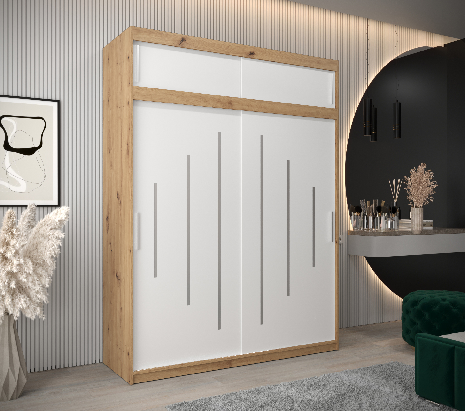 Šatní skříň Abi Y0 s nástavcem Barva korpusu: Dub artisan, Rozměry: 180 cm, Dveře: Bílá
