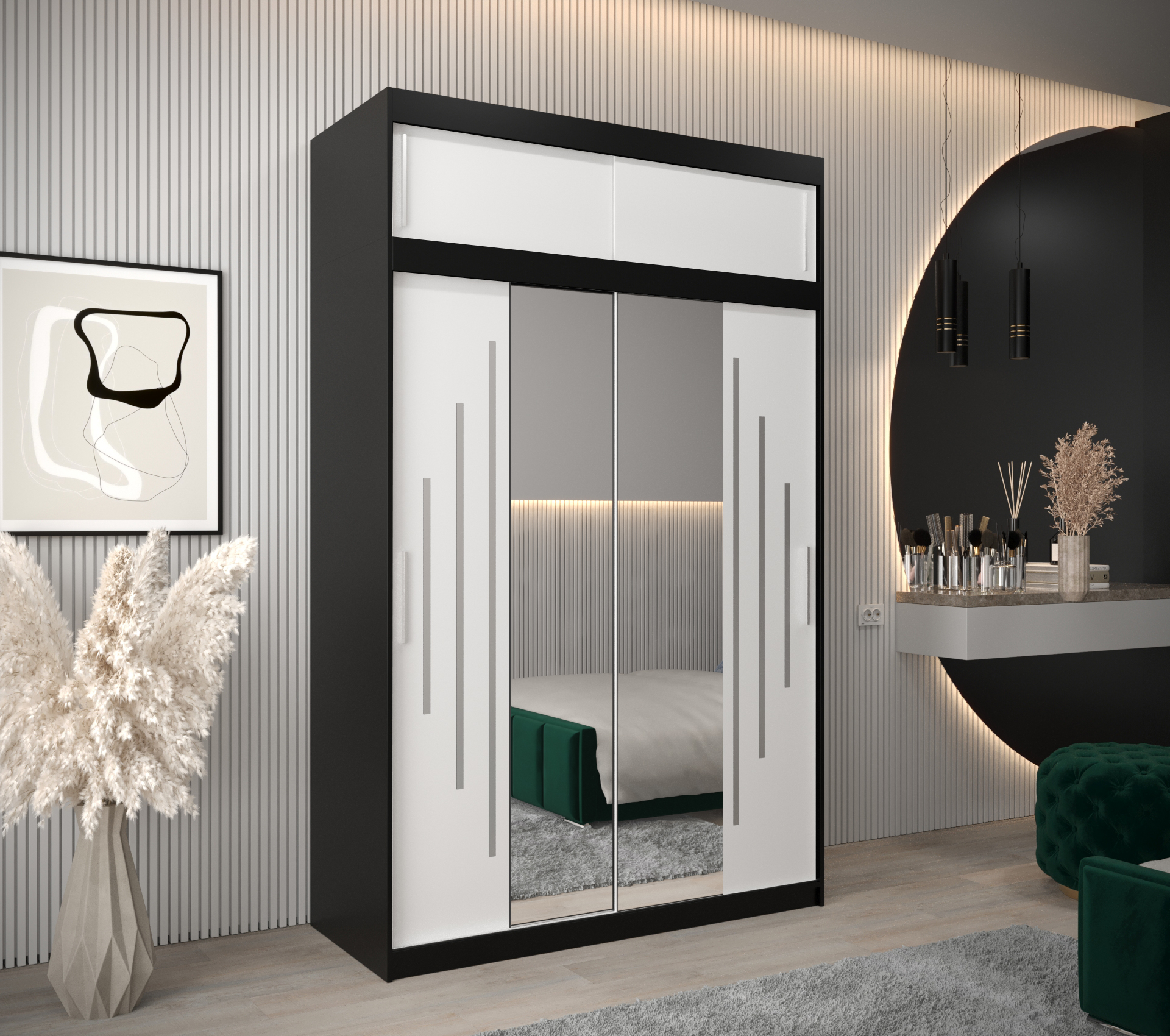 Šatní skříň Abi Y1 s nástavcem Barva korpusu: Černá, Rozměry: 150 cm, Dveře: Bílá