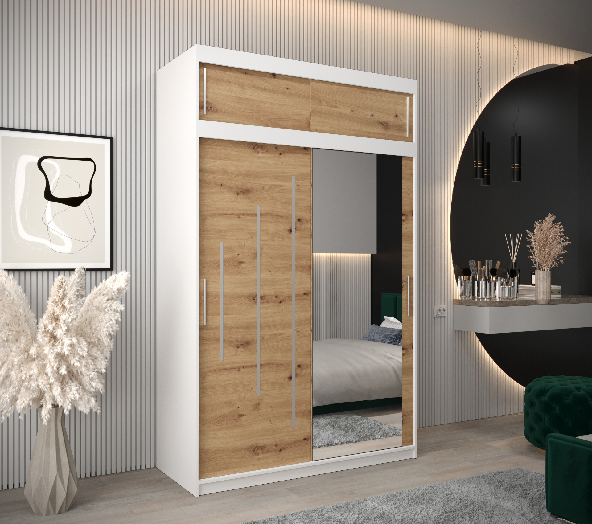 Šatní skříň Abi Y2 s nástavcem Hledáte moderní šatní skříň s posuvnými dveřmi, která vás okouzlí svým originálním vzhledem? Nehledejte nic jiného než šatní skříň Abi Y2 s nástavcem! Šatní skříň nabízí velký úložný prostor a kvalitu. Můžete si vybrat z několika velikostí a barev, takže se skříň přizpůsobí vašim potřebám. • Vlastnosti šatní skříně Korpus a posuvné dveře Korpus a dveře jsou vyrobeny z kvalitní laminované dřevotřískové desky o síle 16 mm. PVC hrany Hrany desek jsou opatřeny PVC dýhou o síle 0,5 mm Ozdobné pásky Posuvné dveře jsou zdobené stříbrnými plastovými pásky, které je nutno při montáži nalepit. Zrcadlo Šatní skříň je se zrcadlem. Úchyty K otevření šatní skříně vám poslouží plastové stříbrné úchyty. Vnitřní uspořádání Základem vnitřního uspořádání jsou dvě šatní šatní a police - lze si dokoupit zásuvky. • Barevné varianty: Šatní skříň Abi Y2 s nástavcem je dostupná v dekorech a barvách dub artisan, dub sonoma, černá a bílá. Všechny tyto odstíny lze vzájemně kombinovat. dub artisan dub sonoma černá bílá • Rozměry 240 cm celková výška 6 rozměrů celková šířka 62 cm celková hloubka 16 mm tloušťka desky 6 rozměrů šířka 100 cmšířka 120 cmšířka 150 cmšířka 180 cmšířka 200 cmšířka 250 cm Detailní rozpis jednotlivých balíků při přepravěV odkazu níže naleznete podrobnosti týkající se počtu balíků, jejich rozměry a váhuRozpis jednotlivých balíků • ZásuvkyPraktické rozšíření univerzální a stylové skříně Abi o nástavec se zásuvkami. Elegantní rozšíření se dvěma, nebo od šířky 180 cm, dokonce se čtyřmi šuplíky je ideální pro rozšíření skříně o další úložný prostor. Barevné provedení zásuvek je stejné jako korpus šatní skříně. vnitřní uspořádání do šířky 150 cm rozšíření o šuplíky u šířky do 150 cm vnitřní uspořádání od šířky 180 cm rozšíření o šuplíky od šířky 180 cm • Další modely šatních skříní z řady AbiZaujala Vás tato šatní skříň, ale představovali by jste si jiný rozměr, barevnou kombinaci nebo variantu zrcadla? Jedním kliknutím na odkaz níže se vám nabídnou další šatní skříně. A další výhodou těchto šatních skříní je i možnost dokoupení nástavců. Zobrazit další modely... • Další součásti ložniceVybavujete nový byt nebo chcete obměnit svůj stávají nábytek v ložnici? Postel je středem veškerého dění v místnosti. V naší nabídce naleznete veškeré komponenty ložnice.Zobrazit další nábytek.... • Upozornění Odstíny prezentované na fotografiích jsou ilustračním materiálem, barvy se mohou lišit od vyobrazení na fotografiích podle nastavení vašeho zobrazovacího zařízení. Zboží dodáváme vlastní dopravou! Zboží rozvážíme také o víkendu. Dodáváme v demontu s podrobným instruktážním návodem. Objednat si také můžete naše doplňkové služby jako je montáž na místě, výnos do patra a nebo ekologickou likvidaci starého nábytku. Zájem o služby přidejte do košíku v objednávce. Ceník doplňkových služeb - výnos, ekolikvidace a montáž Montáž na místě Pokud se nechcete trápit s montáží, rádi Vám sestavíme nábytek na místě Výnos až do bytu Nechcete se tahat se zakoupeným zbožím? Rádi vám nábytek vyneseme až do bytu. Doprava Paul nábytek Zboží vám dopravíme až k domu naší vlastní dopravou, aby nedošlo k poškození cizím dopravcem. Ekologická likvidace Pokud si přejete, můžeme odvést starý nábytek a ekologicky jej nechat zlikvidovat. Zboží dodáváme po celé České republice! Dodáváme v demontu s podrobným instruktážním návodem. Objednat si také můžete naše doplňkové služby jako je montáž na místě, výnos do patra nebo ekologickou likvidaci starého nábytku. Požadované služby přidejte do košíku v objednávce. Montáž na místě Pokud se nechcete trápit s montáží, rádi Vám sestavíme nábytek na místě Výnos až do bytu Nechcete se tahat se zakoupeným zbožím? Rádi vám nábytek vyneseme až do bytu. Doprava ČR Zboží vám dopravíme až k domu za první uzamykatelné dveře po celé České republice. Ekologická likvidace Pokud si přejete, můžeme odvést starý nábytek a ekologicky jej nechat zlikvidovat. Ceník doplňkových služeb - výnos, ekolikvidace a montáž Upozornění Produkty prezentované na fotografiích jsou ilustračním materiálem, barvy se mohou lišit od vyobrazení na fotografiích podle nastavení vašeho zobrazovacího zařízení.