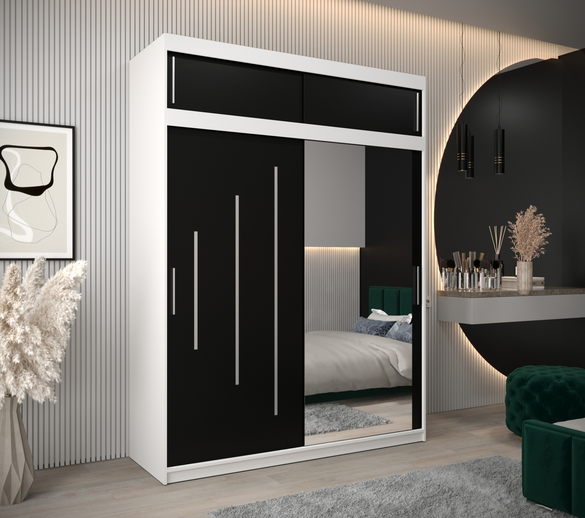 Domů Nábytek Ložnice Ložnicové sestavy Šatní skříň Abi Y2 s nástavcem Barva korpusu: Bílá, Rozměry: 180 cm, Dveře: Černá