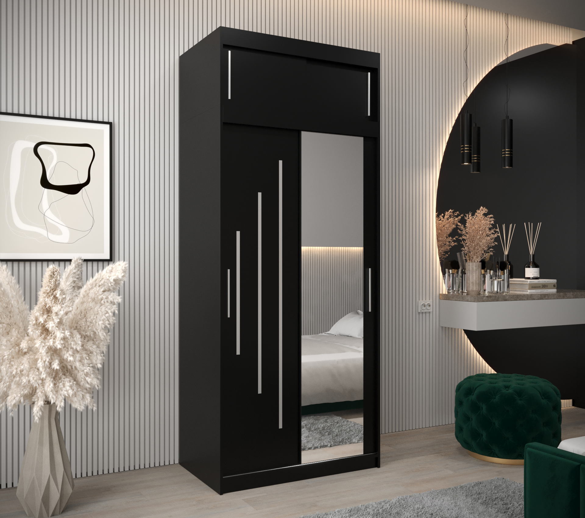 Šatní skříň Abi Y2 s nástavcem Barva korpusu: Černá, Rozměry: 100 cm, Dveře: Černá