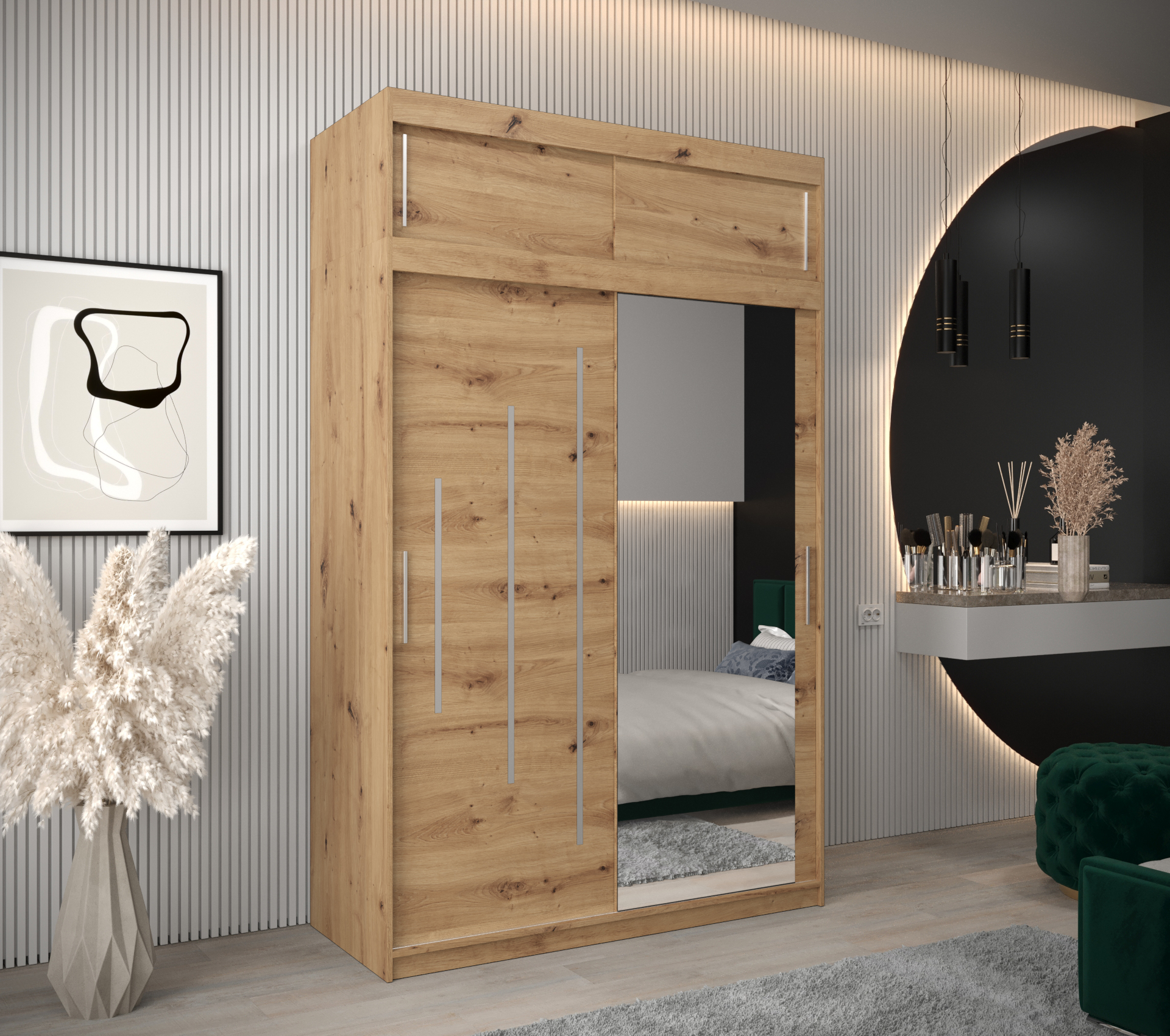 Šatní skříň Abi Y2 s nástavcem Hledáte moderní šatní skříň s posuvnými dveřmi, která vás okouzlí svým originálním vzhledem? Nehledejte nic jiného než šatní skříň Abi Y2 s nástavcem! Šatní skříň nabízí velký úložný prostor a kvalitu. Můžete si vybrat z několika velikostí a barev, takže se skříň přizpůsobí vašim potřebám. • Vlastnosti šatní skříně Korpus a posuvné dveře Korpus a dveře jsou vyrobeny z kvalitní laminované dřevotřískové desky o síle 16 mm. PVC hrany Hrany desek jsou opatřeny PVC dýhou o síle 0,5 mm Ozdobné pásky Posuvné dveře jsou zdobené stříbrnými plastovými pásky, které je nutno při montáži nalepit. Zrcadlo Šatní skříň je se zrcadlem. Úchyty K otevření šatní skříně vám poslouží plastové stříbrné úchyty. Vnitřní uspořádání Základem vnitřního uspořádání jsou dvě šatní šatní a police - lze si dokoupit zásuvky. • Barevné varianty: Šatní skříň Abi Y2 s nástavcem je dostupná v dekorech a barvách dub artisan, dub sonoma, černá a bílá. Všechny tyto odstíny lze vzájemně kombinovat. dub artisan dub sonoma černá bílá • Rozměry 240 cm celková výška 6 rozměrů celková šířka 62 cm celková hloubka 16 mm tloušťka desky 6 rozměrů šířka 100 cmšířka 120 cmšířka 150 cmšířka 180 cmšířka 200 cmšířka 250 cm Detailní rozpis jednotlivých balíků při přepravěV odkazu níže naleznete podrobnosti týkající se počtu balíků, jejich rozměry a váhuRozpis jednotlivých balíků • ZásuvkyPraktické rozšíření univerzální a stylové skříně Abi o nástavec se zásuvkami. Elegantní rozšíření se dvěma, nebo od šířky 180 cm, dokonce se čtyřmi šuplíky je ideální pro rozšíření skříně o další úložný prostor. Barevné provedení zásuvek je stejné jako korpus šatní skříně. vnitřní uspořádání do šířky 150 cm rozšíření o šuplíky u šířky do 150 cm vnitřní uspořádání od šířky 180 cm rozšíření o šuplíky od šířky 180 cm • Další modely šatních skříní z řady AbiZaujala Vás tato šatní skříň, ale představovali by jste si jiný rozměr, barevnou kombinaci nebo variantu zrcadla? Jedním kliknutím na odkaz níže se vám nabídnou další šatní skříně. A další výhodou těchto šatních skříní je i možnost dokoupení nástavců. Zobrazit další modely... • Další součásti ložniceVybavujete nový byt nebo chcete obměnit svůj stávají nábytek v ložnici? Postel je středem veškerého dění v místnosti. V naší nabídce naleznete veškeré komponenty ložnice.Zobrazit další nábytek.... • Upozornění Odstíny prezentované na fotografiích jsou ilustračním materiálem, barvy se mohou lišit od vyobrazení na fotografiích podle nastavení vašeho zobrazovacího zařízení. Zboží dodáváme vlastní dopravou! Zboží rozvážíme také o víkendu. Dodáváme v demontu s podrobným instruktážním návodem. Objednat si také můžete naše doplňkové služby jako je montáž na místě, výnos do patra a nebo ekologickou likvidaci starého nábytku. Zájem o služby přidejte do košíku v objednávce. Ceník doplňkových služeb - výnos, ekolikvidace a montáž Montáž na místě Pokud se nechcete trápit s montáží, rádi Vám sestavíme nábytek na místě Výnos až do bytu Nechcete se tahat se zakoupeným zbožím? Rádi vám nábytek vyneseme až do bytu. Doprava Paul nábytek Zboží vám dopravíme až k domu naší vlastní dopravou, aby nedošlo k poškození cizím dopravcem. Ekologická likvidace Pokud si přejete, můžeme odvést starý nábytek a ekologicky jej nechat zlikvidovat. Zboží dodáváme po celé České republice! Dodáváme v demontu s podrobným instruktážním návodem. Objednat si také můžete naše doplňkové služby jako je montáž na místě, výnos do patra nebo ekologickou likvidaci starého nábytku. Požadované služby přidejte do košíku v objednávce. Montáž na místě Pokud se nechcete trápit s montáží, rádi Vám sestavíme nábytek na místě Výnos až do bytu Nechcete se tahat se zakoupeným zbožím? Rádi vám nábytek vyneseme až do bytu. Doprava ČR Zboží vám dopravíme až k domu za první uzamykatelné dveře po celé České republice. Ekologická likvidace Pokud si přejete, můžeme odvést starý nábytek a ekologicky jej nechat zlikvidovat. Ceník doplňkových služeb - výnos, ekolikvidace a montáž Upozornění Produkty prezentované na fotografiích jsou ilustračním materiálem, barvy se mohou lišit od vyobrazení na fotografiích podle nastavení vašeho zobrazovacího zařízení.