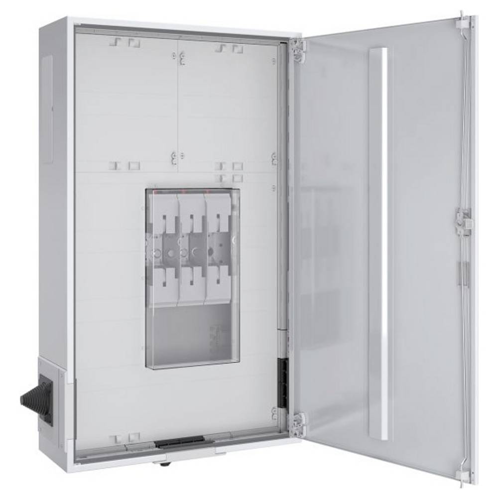 Kompletní skříň se skládá z 3x 1pólové NH2 spodní části, 5 přípojnicového systému, s plápolající plamínkou kabelů 1x 14-54 mm