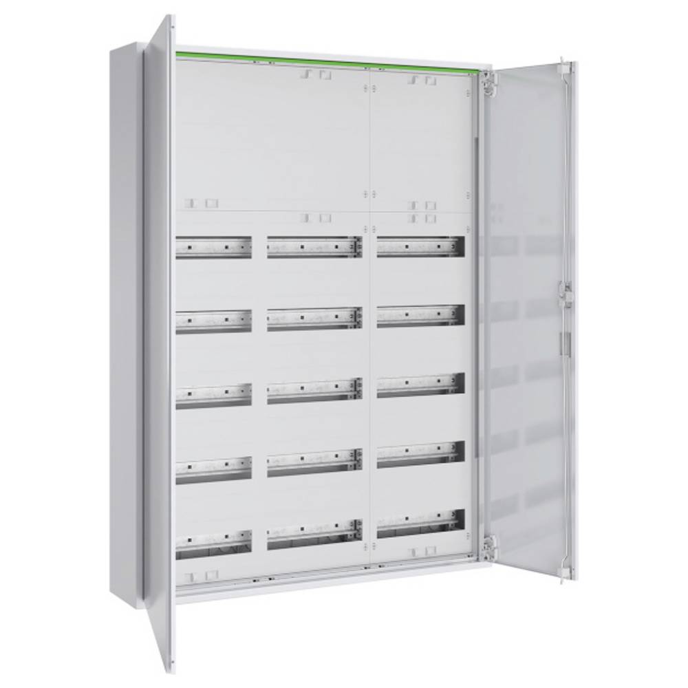 Kompletní skříň pro montáž na omítku se skládá z: RM pouzdra s úplnými dveřmi, 3x rozvodná pole 5 řady, 180 TE, pro zařízení pro montáž na lištu DIN, s uzavřeným krytem a s izolovanými nosnými lištami