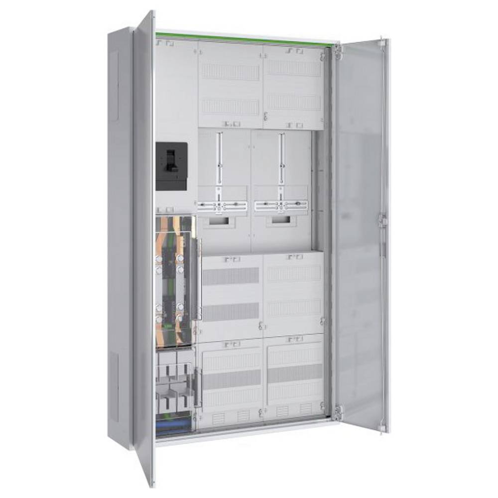 Rozvodná skříň 250 a podle sítě TAB-BW se skládá z: Skříň na elektroměr IP44, 3x NAR s 40 mm sběrnou lištou 2x12x5 mm vybavena spodní díl NH2 s průhledným krytem a N/PE připojením, 4x svorka na sběrni