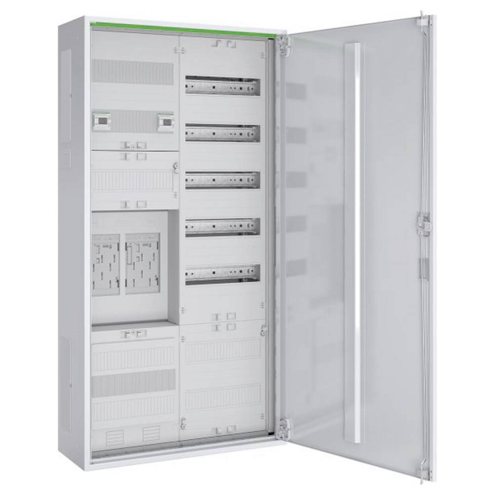 Kompletní skříň s polem pro tepelnou pumpou se skládá z: 2x 3 bodové upevnění s 5-pólovou hlavní rozváděcí svorkou, 5-pólový přípojnicový systém, 5x připojovací svorky 16 mm m², bez počítadla, 1x rozv