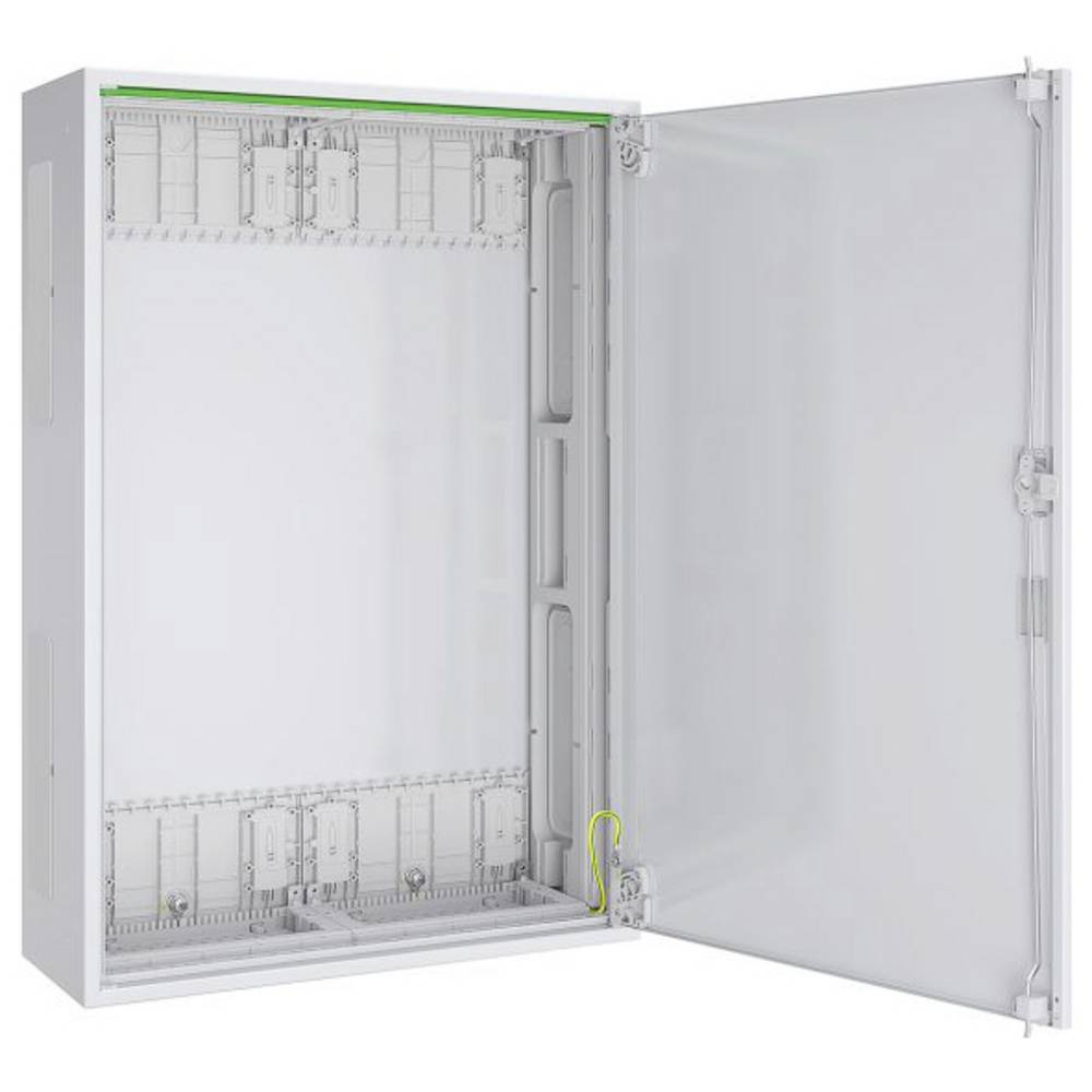 Systémové pouzdro uzemněné pro montáž na omítku, UP a částečně zapuštěnou, skládá se z: Prázdné pouzdro s plochou membránou, boční výkroje pro příčné zapojení v AR a přípojném vedení v SAR, plné dveře