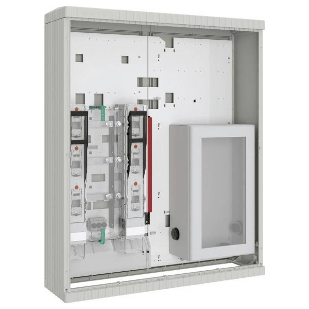 Skládá se z: Pouzdra v x Š x H (mm): 1355 x 1110 x 315: Polyester zesílený skelnými vlákny FS 833.5 podle DIN 16913, podobný RAL 7035 - plastová montážní deska 6 mm - dveře s dvojitým zámkem a polovál