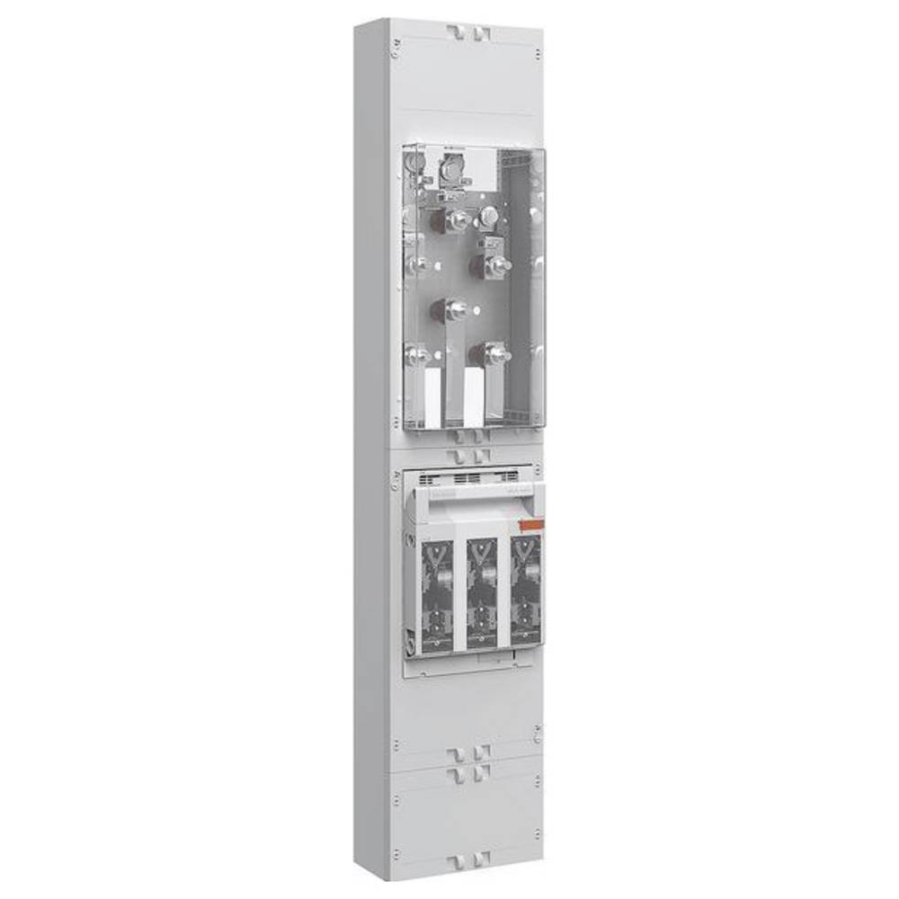 Obsahuje: Prostor pro měnič (nahoře), H x B (mm): 450 x 250: S izolátorem, primární zapojení 95m2mm 2mm. Měděné 750 připojovací svorky a zaplombovací kryt s čirým krytím, pro univerzální izolační jazý