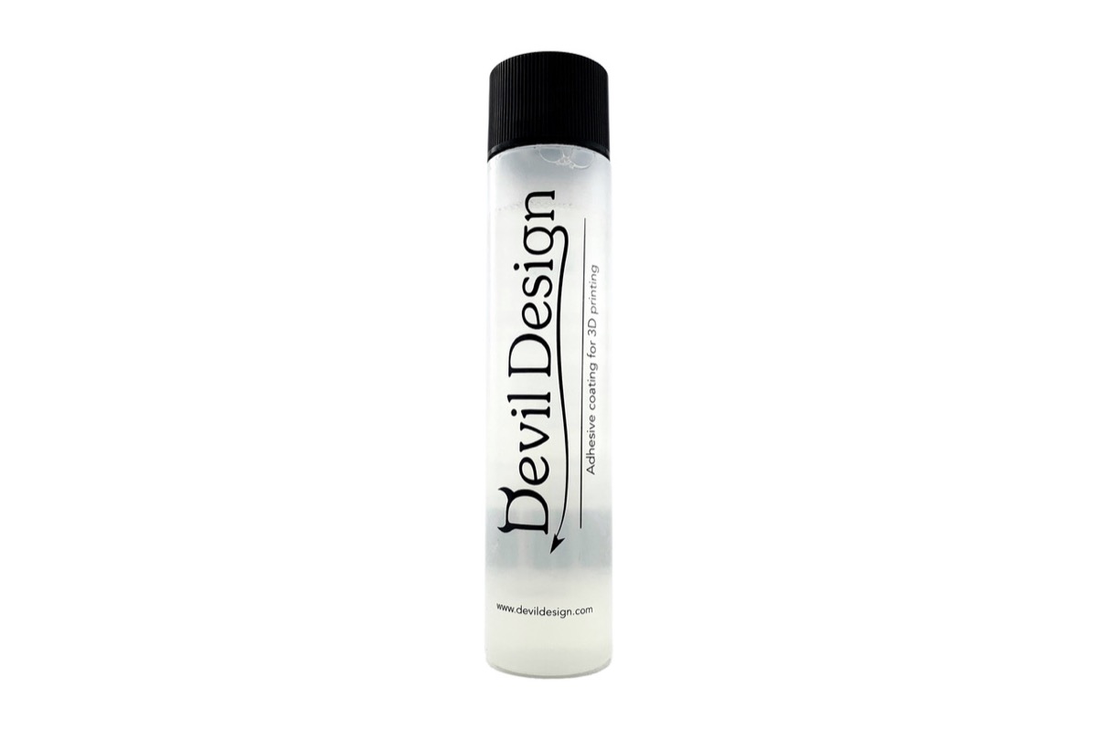 Devil Design představuje nový produkt - tekuté lepidlo na tiskové podložky (110 ml). Jedná se o přípravek pro lepší přilnavost povrchu v závislosti na teplotě - adhezivita roste se zvyšováním teploty podložky. Po dokončení tisku, poté co vychladne podložka, lze model opět snadno sejmout z tiskové podložky. Jedná se o kapalný prostředek. Neobsahuje tedy žádný plyn a je šetrný k životnímu prostředí. Během tisku nezapáchá, naopak má příjemnou vanilkovou vůni. Produkt je rozpustný ve vodě a snadno se čistí. Zvýšení adheze je odzkoušeno pro materiály: PLA, PLA-ST, ABS, ABS+, ABS-T, HIPS, ASA, TPU, PET-G.Návod k použití:1. Vyčistěte tiskovou plochu tiskárny. Ujistěte se, že na tiskové podložce je teplota nižší než 50°C! 2. Adhezivní tyčinku Devil Design několik vteřin protřepejte, poté jej naneste na (nevyhřátou) tiskovou podložku. Po odšroubování víčka naleznete houbičkový aplikátor, kterým docílíte velmi přesného nanášení jen tam, kde opravdu potřebujete.3. Vyčkejte cca 2 minuty, než povrch zcela uschne, teprve poté vyhřejte podložku na požadovanou teplotu. Teplotu volte dle zvoleného typu filamentu. Orientovat se můžete dle doporučených pracovních teplot tekutého lepidla Devil Design viz tabulka níže.Je-li podložka vyhřátá, můžete začít tisknout. 4. Po tisku 3D objektu vyčkejte, než se tisková podložka ochladí. Model by měl jít po tisku po vychladnutí snáze sejmout z podložky. Doporučená teplota podložky dle typu materiálu: ABS, ABS+ 90°C - 100°C ASA 90°C - 100°C HIPS 90°C - 100°C PLA 50°C - 60°C PET-G 70°C - 80°C TPU 20°C - 80°C Množství v lahvičce Vám vystačí na dlouhou dobu, podle četnosti použití a velikosti tiskové plochy pro řádově několik kilogramů filamentu.